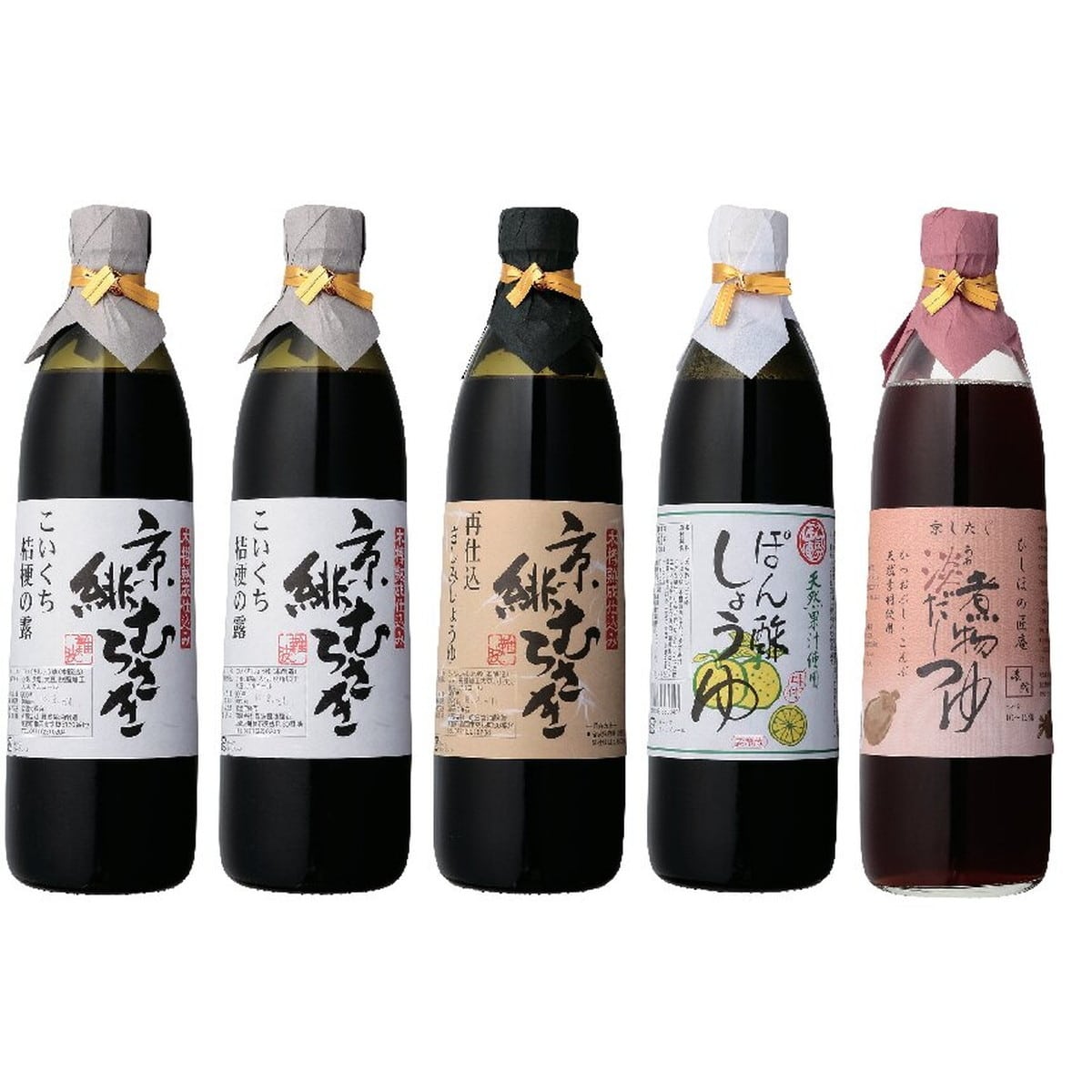 ●数量・内容:京緋むらさき桔梗の露(こいくち)900ml×2、京緋むらさきさしみ醤油(再仕込)・ぽん酢しょうゆ・淡だし煮物つゆ(濃縮10倍タイプ)各900ml