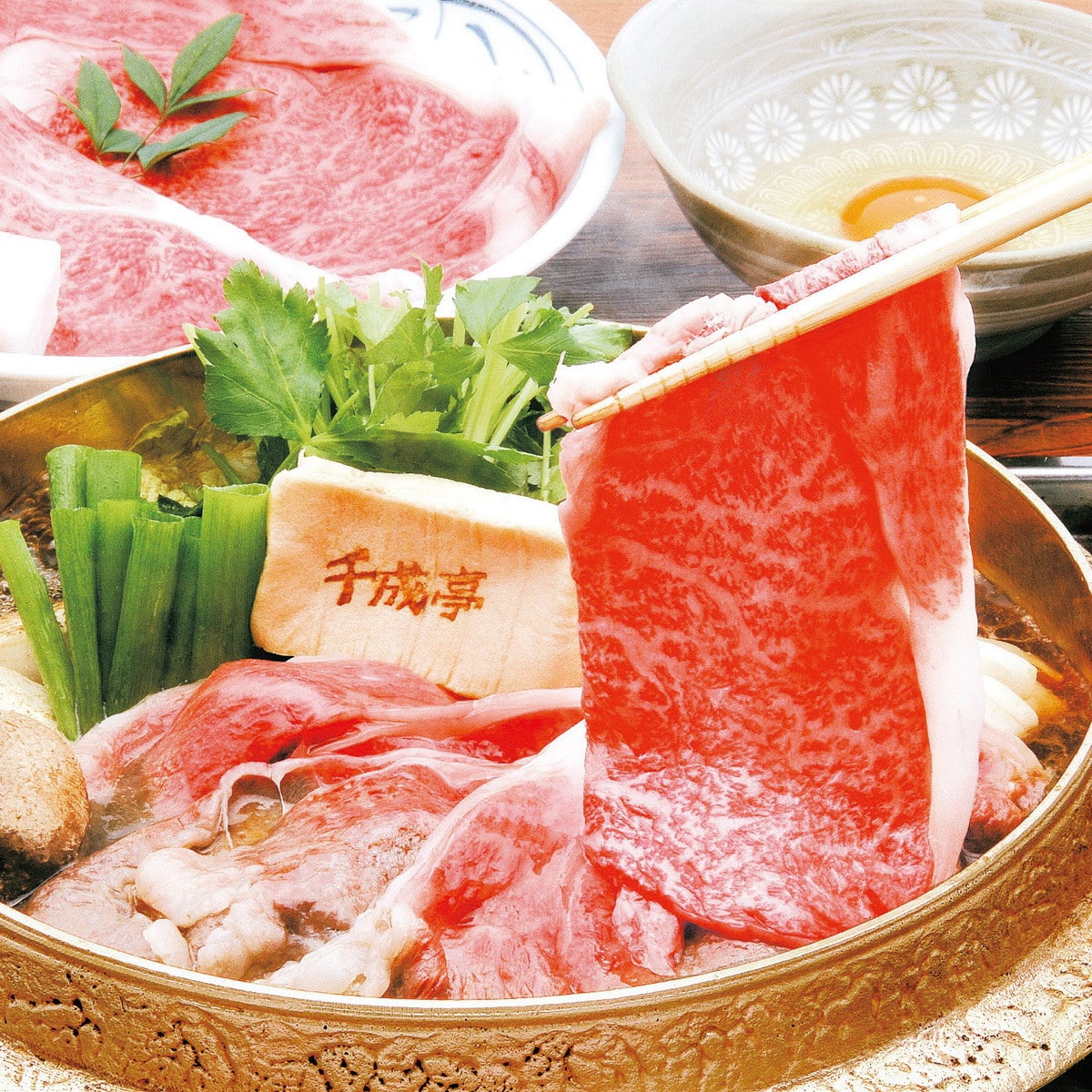 「千成亭 近江牛 すき焼き(約1kg)」 鈴鹿山系の良水に恵まれた近江・湖東の地で長期間肥育された近江牛。中でも希少な未経産牝牛をえり抜き、モモ肉と旨味のあるバラ肉をすき焼き用にスライスしました。牛肉本来の旨味が良くわかる、さっぱりとした赤身肉は、すき焼きをはじめ、さまざまな牛肉料理に幅広くご利用いただけます。冷凍には細胞を潰さず、解凍後もほとんどドリップの出ない、高度急速凍結機を使用いたします。
