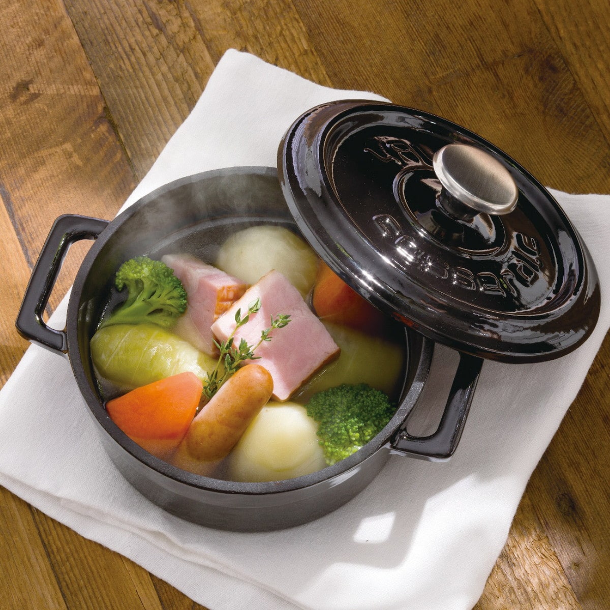 「LAVA ラウンドキャセロール14cm」 煮る、焼く、炒める、その全てで高い熱伝導が素材の旨みを逃さず調理してくれます。金属加工伝統の地、トルコで誕生。優れた熱伝導と蓄熱性をもった鋳鉄製品であり、ホーロー加工により焦げ付きにくくお手入れも簡単です。少量の熱で絶妙な味を実現する上質な鋳鉄でできた調理器具LAVAは、鋳鉄の持つ高い蓄熱性を生かすため、製品に厚みを持たせています。この独自の構造により、調理時に少量の熱で、すべての食材に均等に熱を加えることを実現しています。あらゆる熱源に対応食材の水分だけで調理する「無水調理」で手軽においしい調理調理道具でありながらそのまま「食卓の主役」にもなる暮らしもたのしく、料理も、遊びもお手入れも簡単、洗剤手洗いも食洗機にも