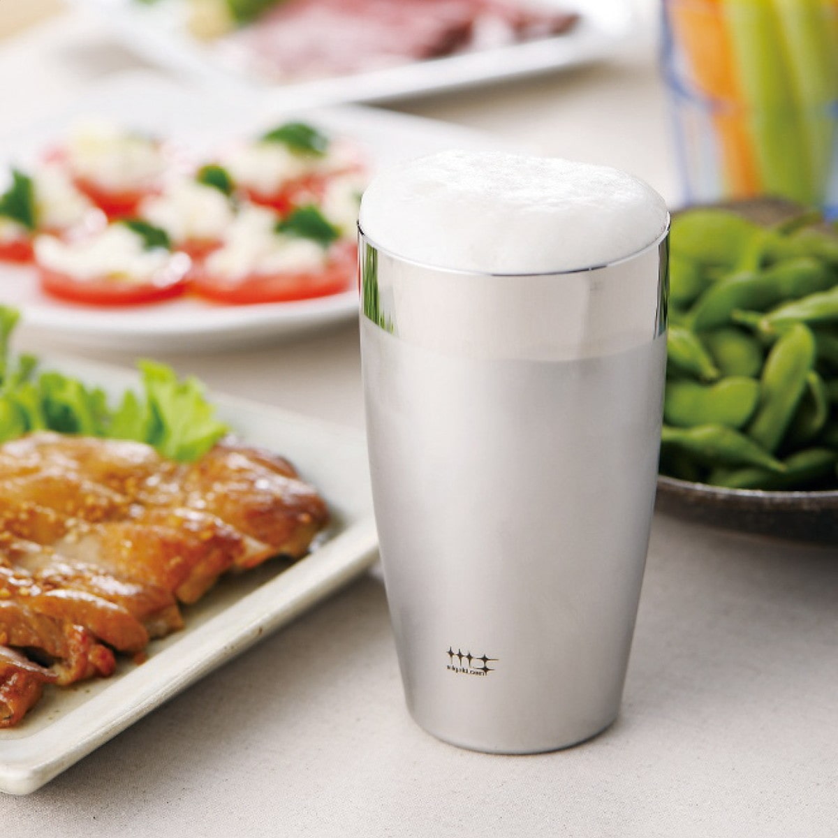 「磨き屋シンジケート ビアタンブラー400ml」 ビールおいしさを最大限に引き出すため、クリーミーな泡が出来るよう内面をミラー仕上げ、内面底部にはきめ細かい泡が出来るようヘアライン加工が施されています。薄く削り込み美しく磨き上げた飲み口は、心地よい口当たりで、すきっとしたビールの美味しさをお楽しみいただけます。
