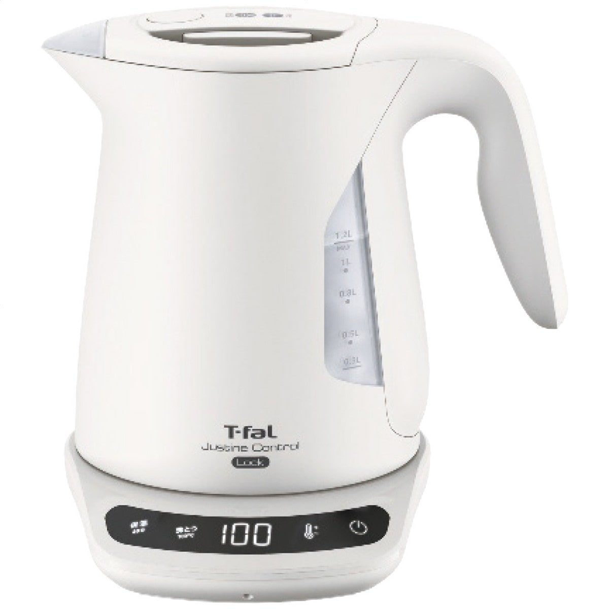 「ティファール ジャスティンロック コントロール 電気ケトル1.2l アイボリー」 倒れてもこぼれにくいお湯漏れロック機能付きケトル。