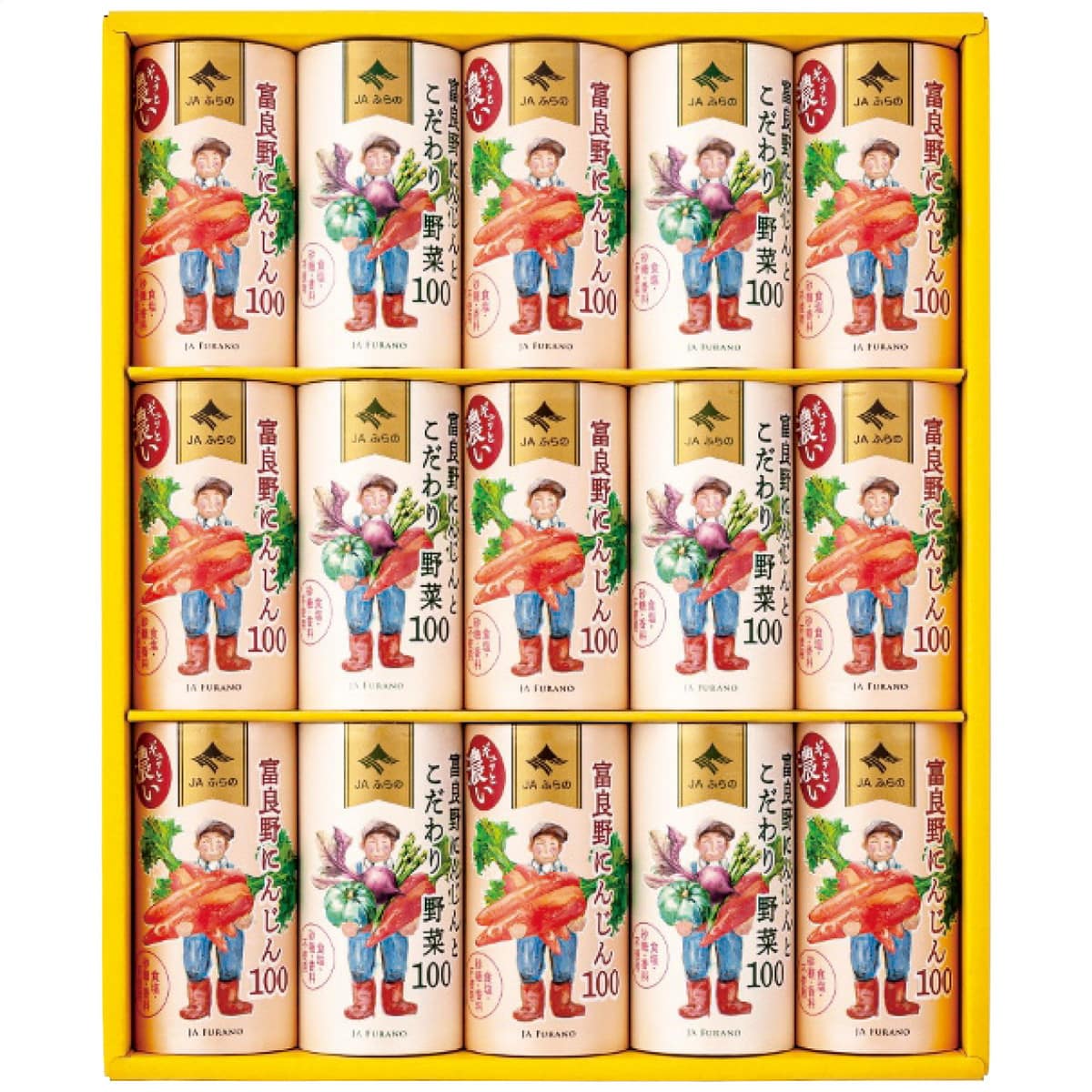 「JAふらの 富良野ジュースセット FJS-35」 甘さとコクが自慢の富良野にんじんを搾ったにんじんジュースと、北海道産かぼちゃ、ビーツ、国産アスパラガスを加えたにんじんミックスジュースの詰合せ。人参、野菜のエグ味がなく、フルーティーな味わいのジュースです。
