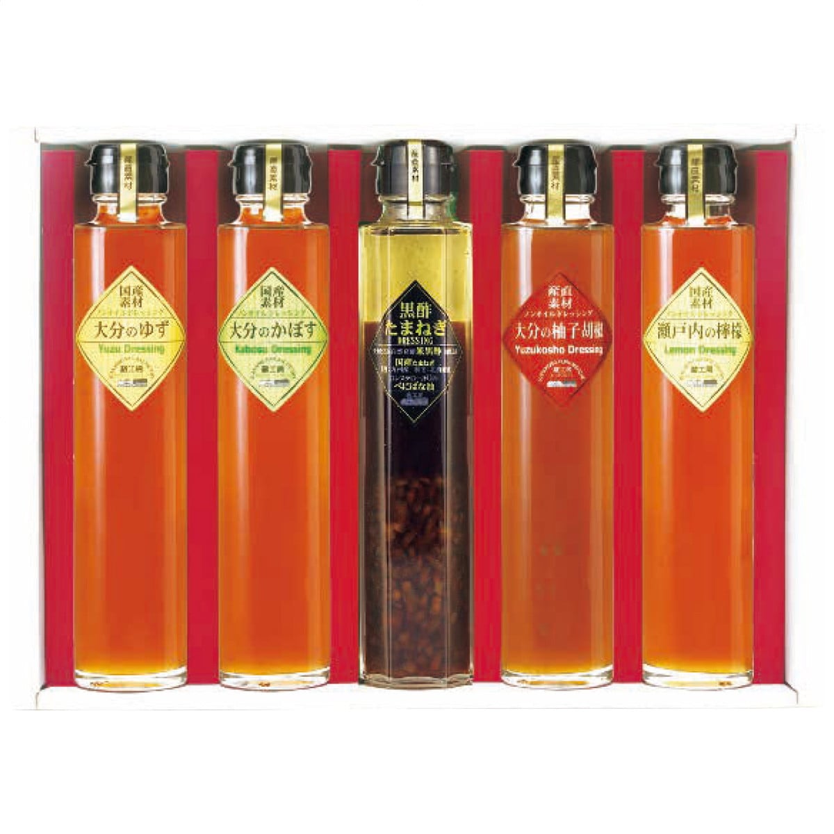 ●数量・内容:ノンオイルドレッシング200ml(大分のかぼす・大分のゆず・大分の柚子胡椒・瀬戸内の檸檬)・黒酢たまねぎドレッシング200ml各1本