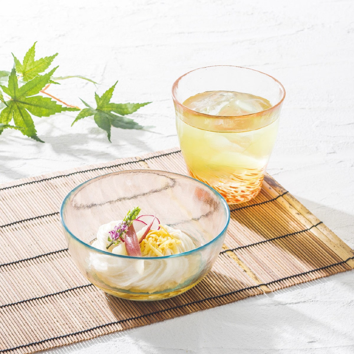 「びーどろ館 ロックグラスペア」 夏のぴったりの涼しげな色合いのロックグラス。ドリンクはもちろんスイーツ等、用途は広がります。