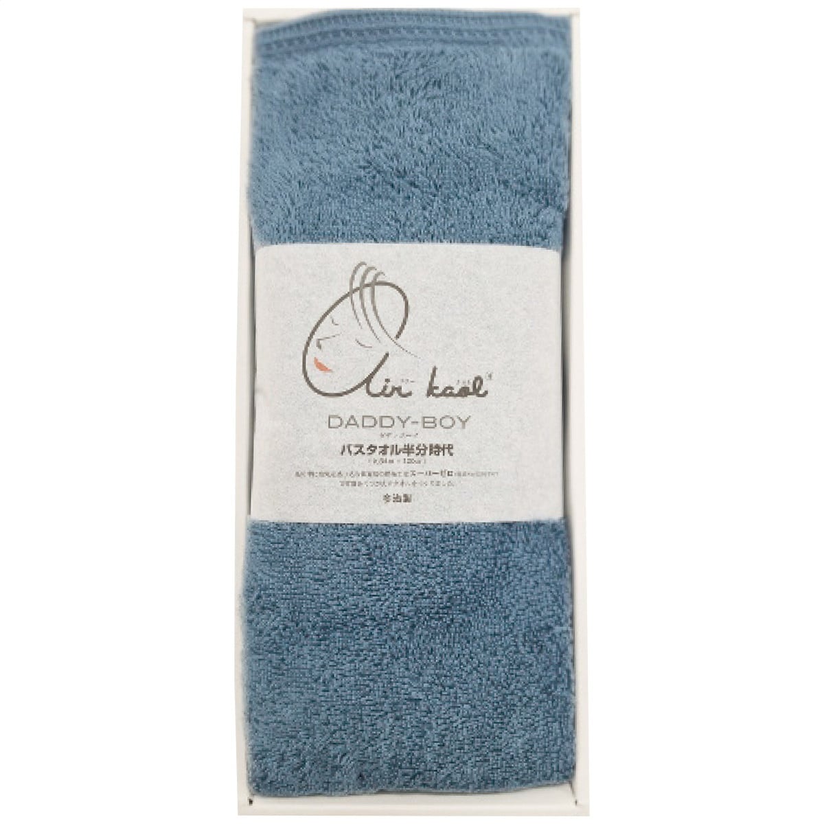 「エアーかおる ダディボーイ ハーフバスタオル 」 特許取得の糸加工「スーパーゼロ」を使用することにより、吸水力1.5倍、2倍速い速乾性、脱毛率1/10の少なさ、ボリューム感抜群、洗うほどにふわふわな風合いなど多くの機能性を実現。肌や髪に対する摩擦も極めて少ないため、アトピー協会推薦品でもある。敏感肌の方や赤ちゃんにも安心。