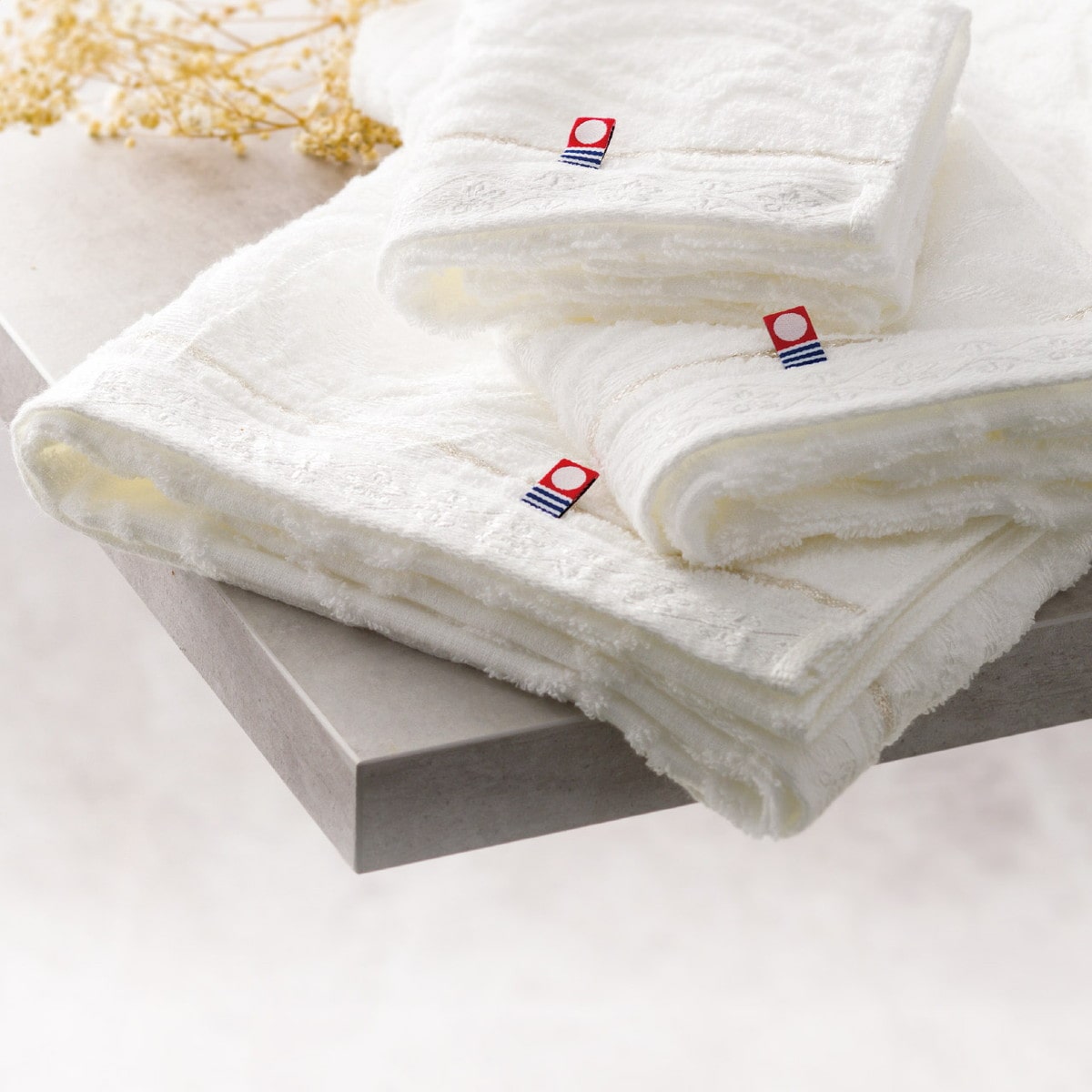 「今治謹製 白織タオル バスタオル」 上品に輝く光沢糸とさりげなく光る銀糸が、華やかさを演出。
