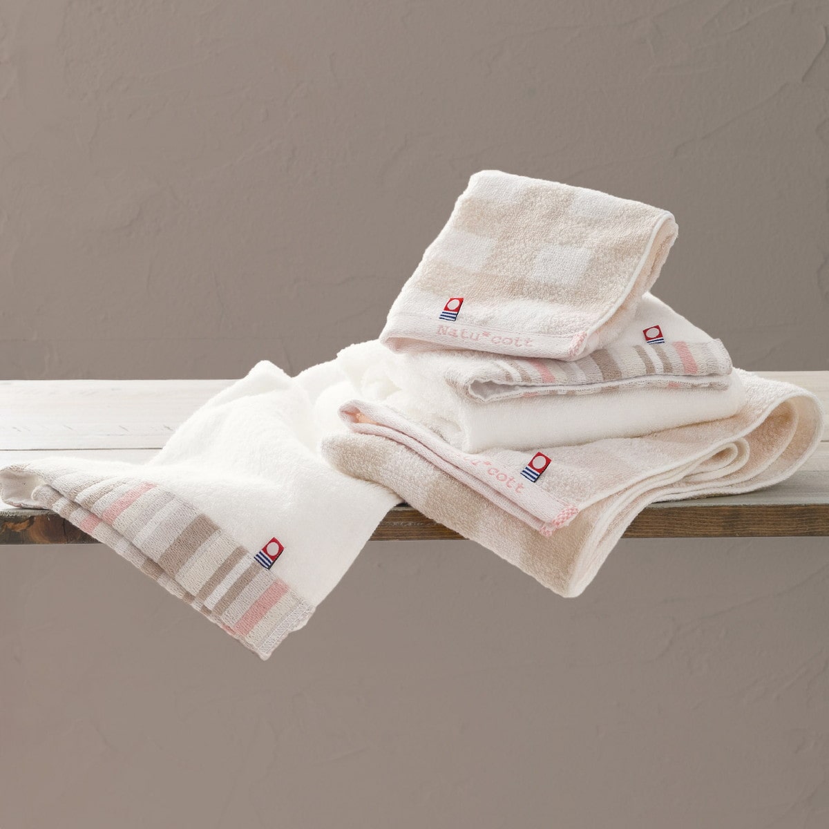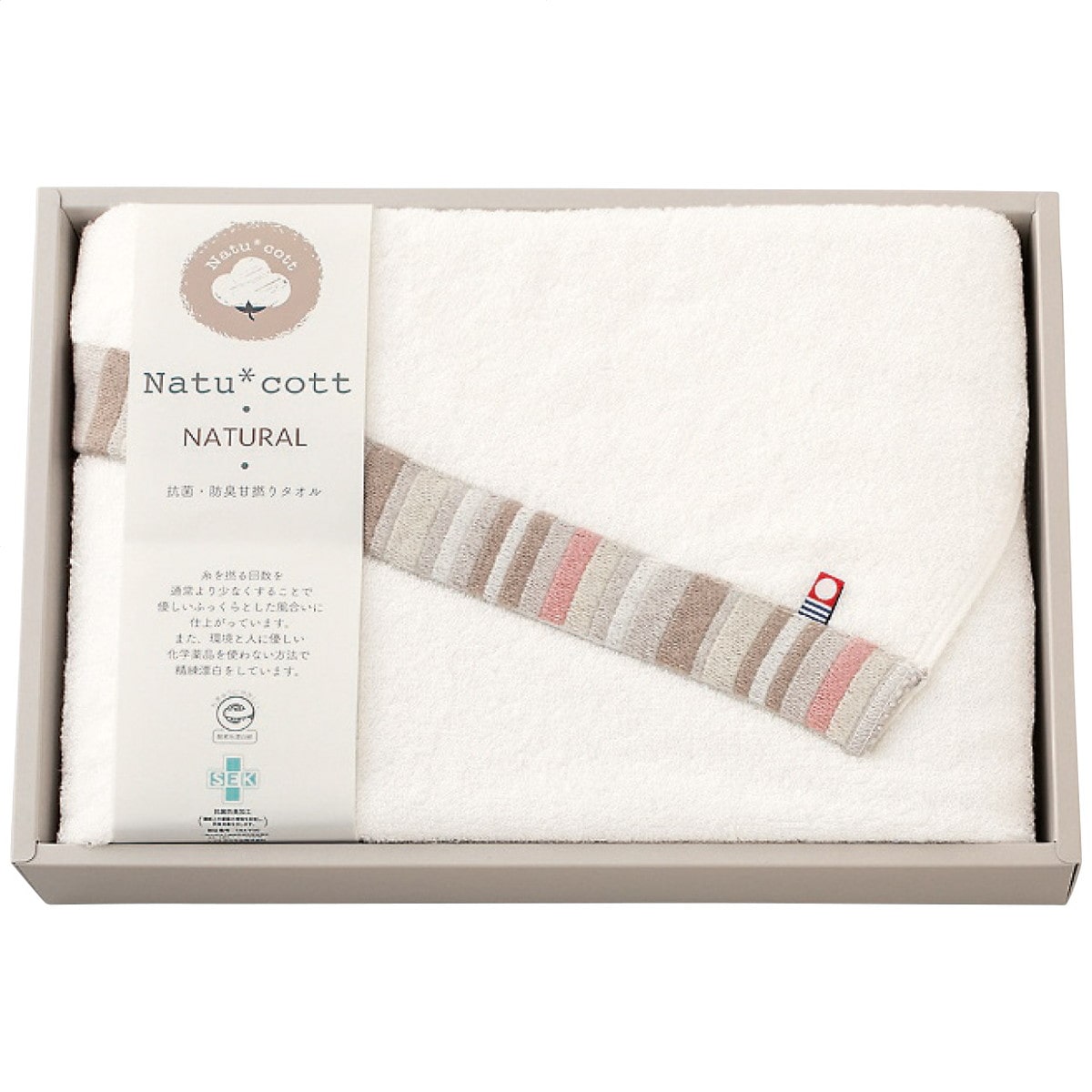 「ナチュコット 抗菌・防臭加工バスタオル NTC-250M(マルチカラー)」 糸を撚る回数を通常より少なくすることで優しいふっくらとした風合いに仕上がっています。また、環境と人に優しい化学薬品を使わない方法で精練漂白をしています。