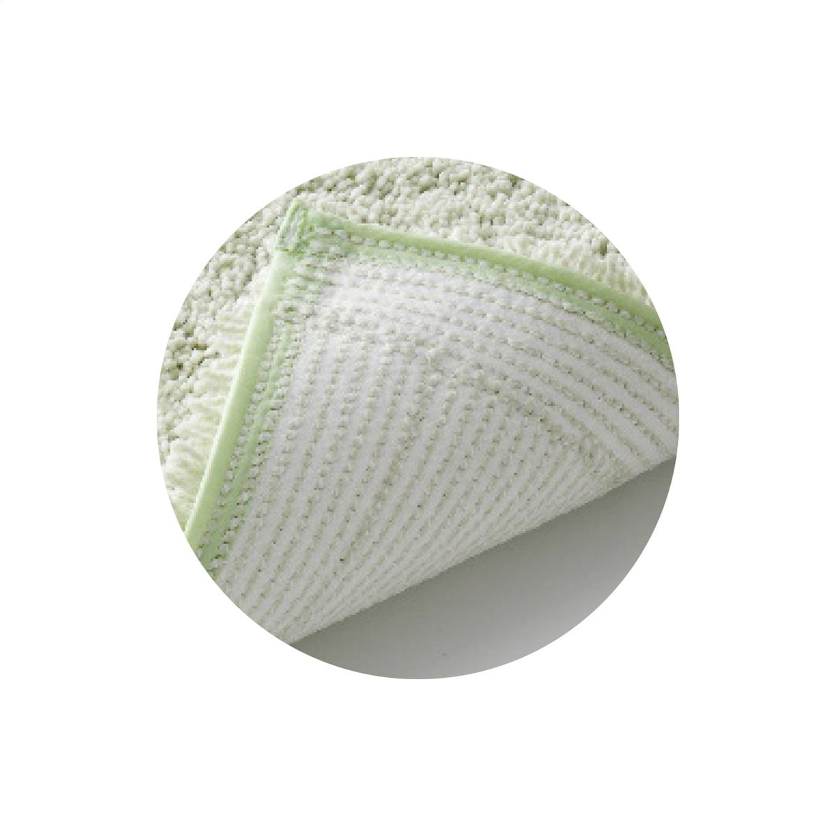 「SDS 実はすごいバスマット 94721(グリーン)」 一見すると普通のバスマットだけど実はすごいバスマット。熟練した技術で1枚ずつ丁寧に手作りしています。「すごい」の秘密はみためでほとんどわからない2種類の糸。吸水速乾のポリエステル糸と抗菌防臭のアクリル糸2本の糸をツイストして1本に組み合わせることでへたりに強い弾力性のあるコシが生み出され、さらっとした足触りを実現しました。さらにうれしい防カビの機能をプラス。お洗濯後も乾きが早く、気軽に洗えます。