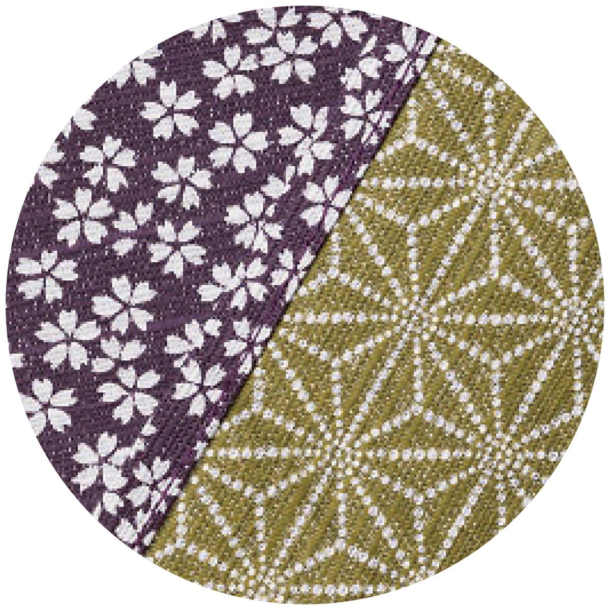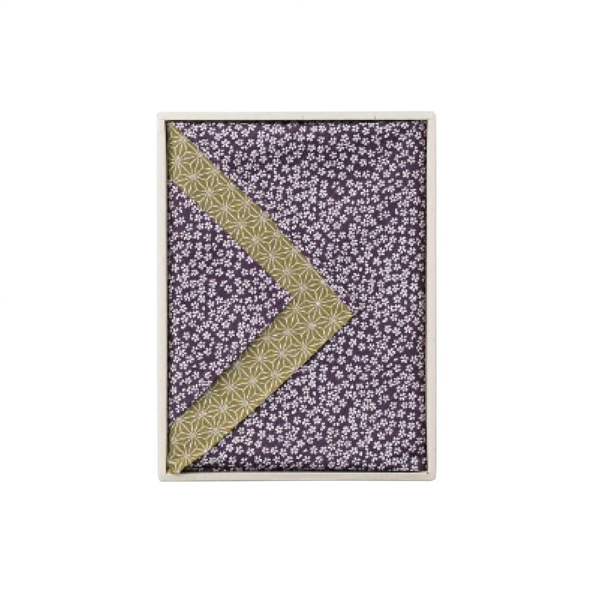 「両面染め 京ふろしき “小紋柄” 052081(紫/利休)」 人気の小桜柄とシックな麻葉柄のリバーシブル風呂敷。ものを包むだけでなく、エコバッグやお部屋のインテリアとしても役立つ大判サイズです。