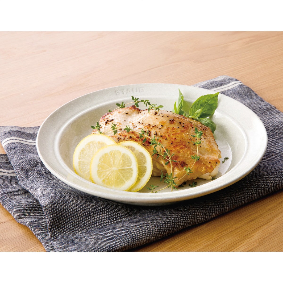 「ストウブ ディーププレート24cm」 ディーププレート24cmは他のプレートよりも高さがあるので、汁気のあるパスタや、シチュー、カレー、煮物などを盛り付けるのにおすすめです。