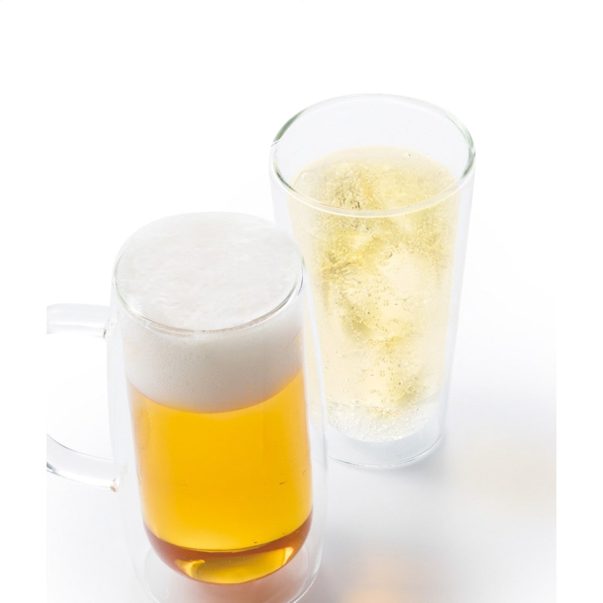 「ククナ ダブルウォールハイボールグラス」 二重構造で保温・保冷ができるハイボールグラスです。結露がでません。温かい飲み物も冷たい飲み物もOK。