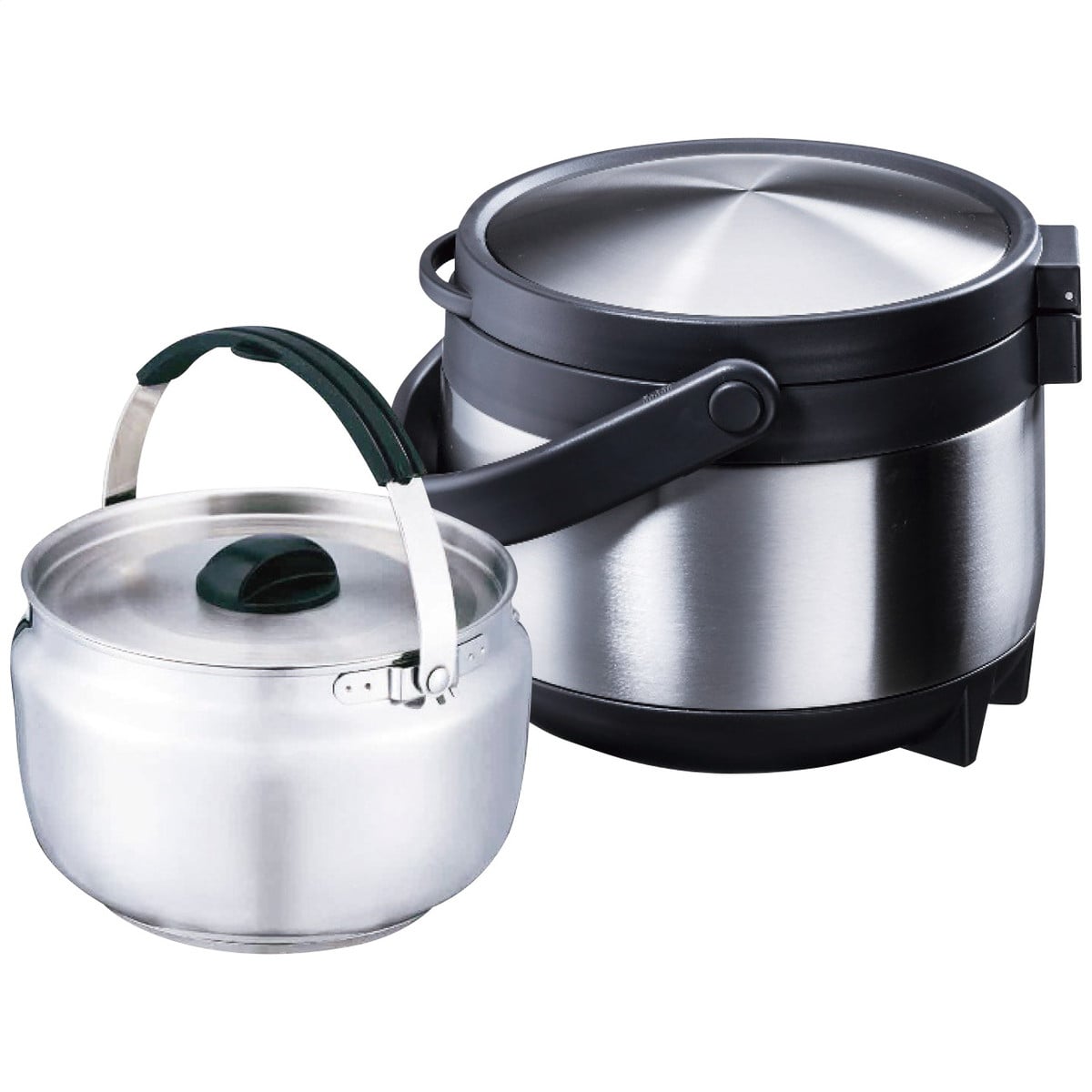 ●数量・内容:直径17.5cm高さ14cm料理器1個・本体、蓋:ステンレス鋼(クロム18%・ニッケル8%・鉄74%)・貼底:アルミニウム、ステンレス鋼・ハンドルゴム:シリコーン・直径20.5cm高さ20cm保温器1個・本体、蓋:ステンレス鋼、ポリプロピレン・ハンドル:ポリプロピレン・保温効力:71℃以上(6時間)・保冷効力:7.5℃以下(6時間)・レシピブック付