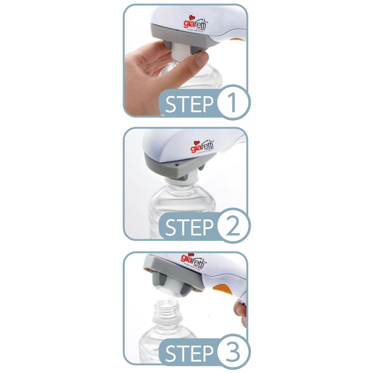 「ジアレッティ 自動ペットボトルオープナー」 ボタン一押しで開けにくかったペットボトルのキャップが簡単に電動で開きます。
