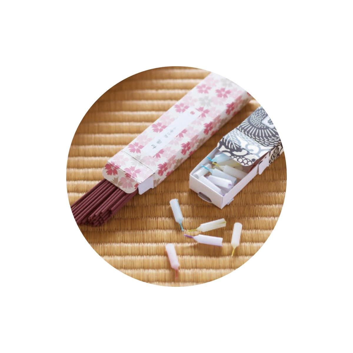 ●数量・内容:長さ13.5cm線香和遊30g(ラベンダーの香り・白梅の香り・桜の香り)各1箱・長さ2.6cm亀山五色蝋燭35g×3箱