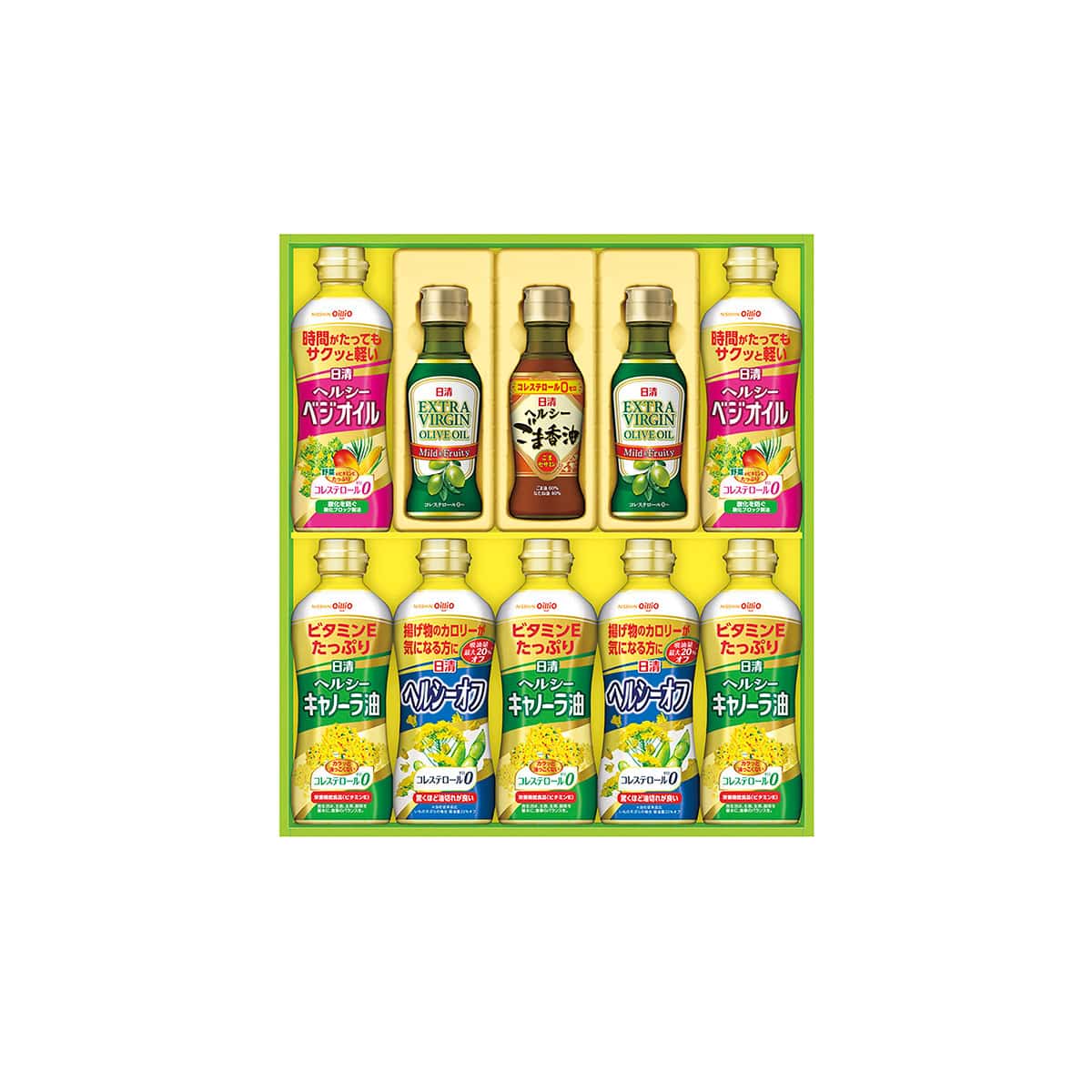 日清オイリオ オリーブオイル&バラエティオイルアソート 日清エキストラバージンオリーブオイルをはじめバラエティ豊かな食用油の詰合せ 。