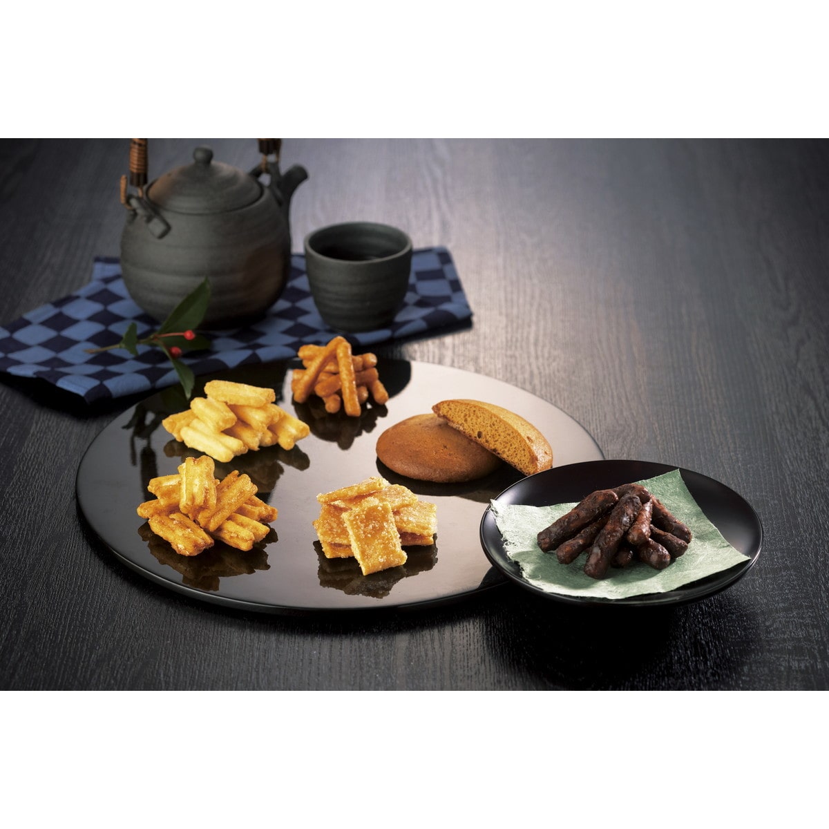 ●数量・内容:黒糖丸ぼうろ×4・揚げ餅(しょうゆ味)20g・さつまいもかりんとう30g 【卵・小麦】