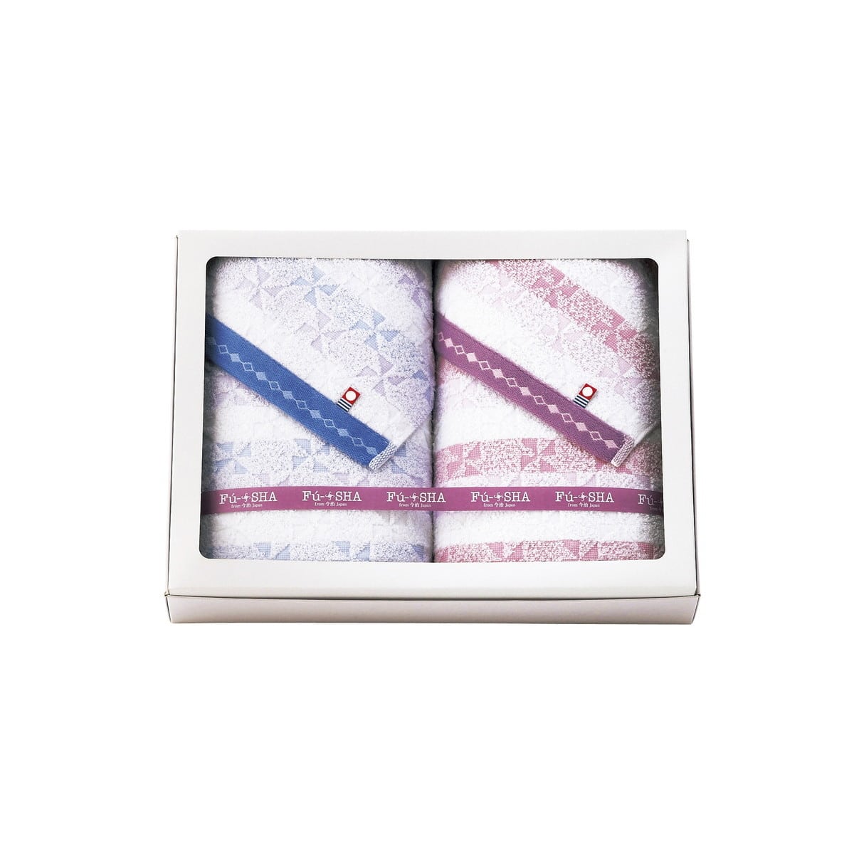 [Fu-SHA(風車) 今治産 バスタオル2P FS-EO] ボーダーに涼しげな風車の柄をあしらいました。軽やかで扱いやすく、水分を良く吸収します。