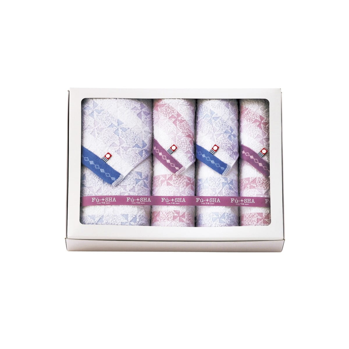 [Fu-SHA(風車) 今治産 タオルセット FS-EZ] ボーダーに涼しげな風車の柄をあしらいました。軽やかで扱いやすく、水分を良く吸収します。