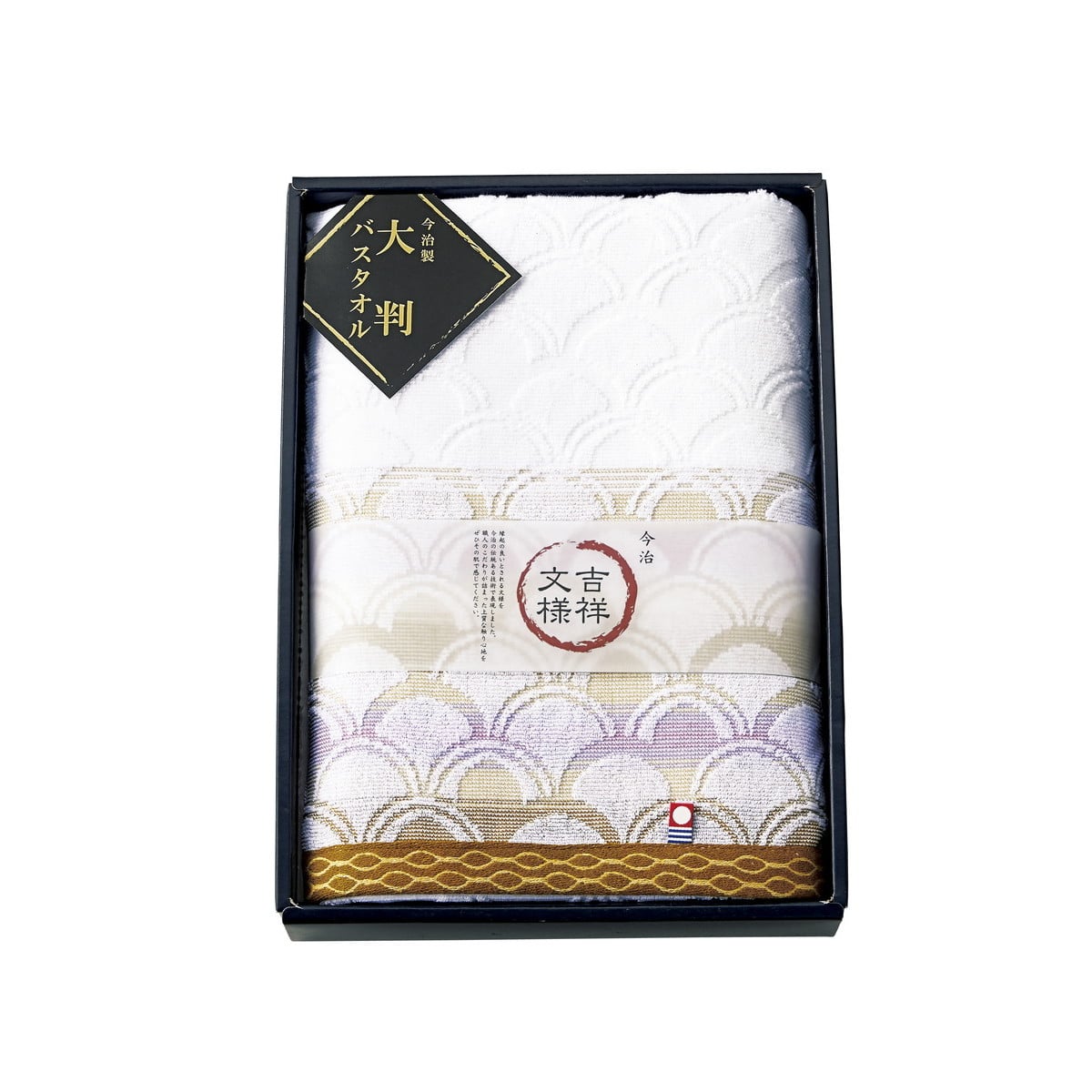 [吉祥文様 今治産 青海波 ゆったり大判バスタオル H-2523] 縁起の良いとされる文様を今治の伝統ある技術で表現しました。職人のこだわりが詰まった上質な触り心地をぜひその肌で感じてください。