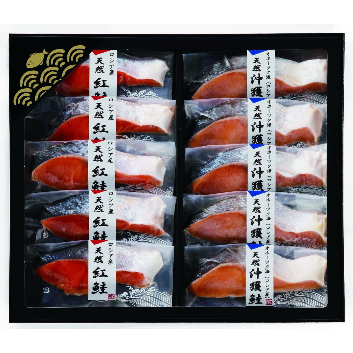 ●数量・内容:紅鮭切身(ロシア産)・沖獲鮭切身(ロシア産)/各80g×5