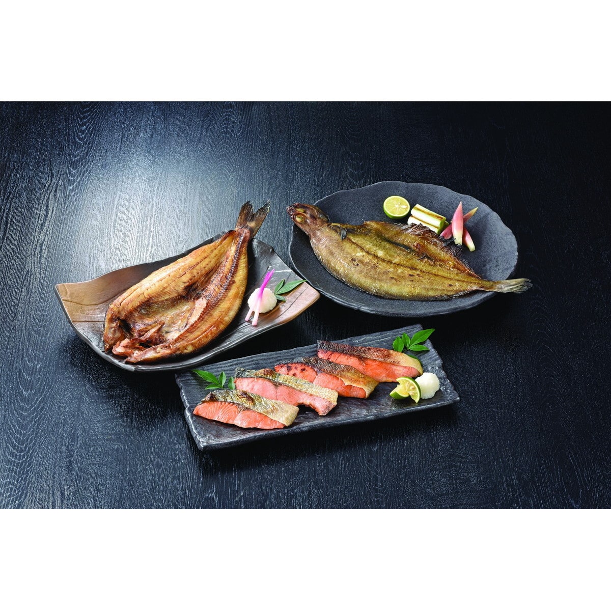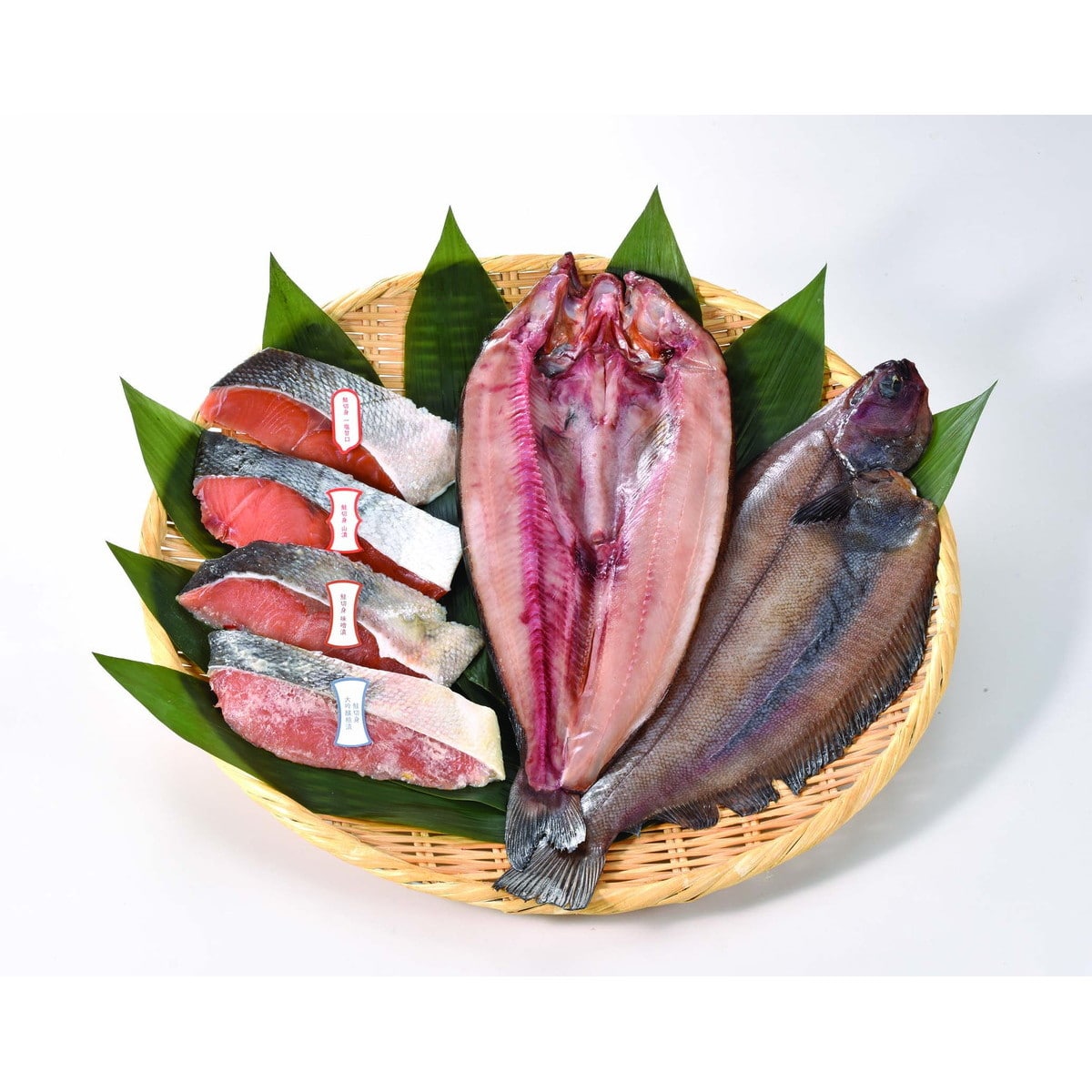 ●数量・内容:オホーツク産ホッケ一夜干し/1枚(350g)、オホーツク産ナメタ鰈一夜干し/1枚(250g)、知床産鮭切身甘口・山漬・鮭味噌漬・粕漬/各1切(各70g)