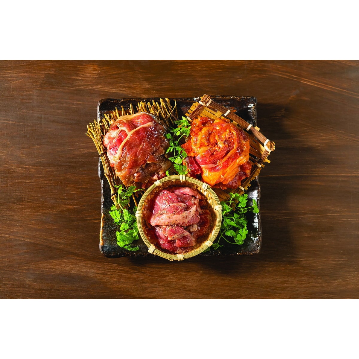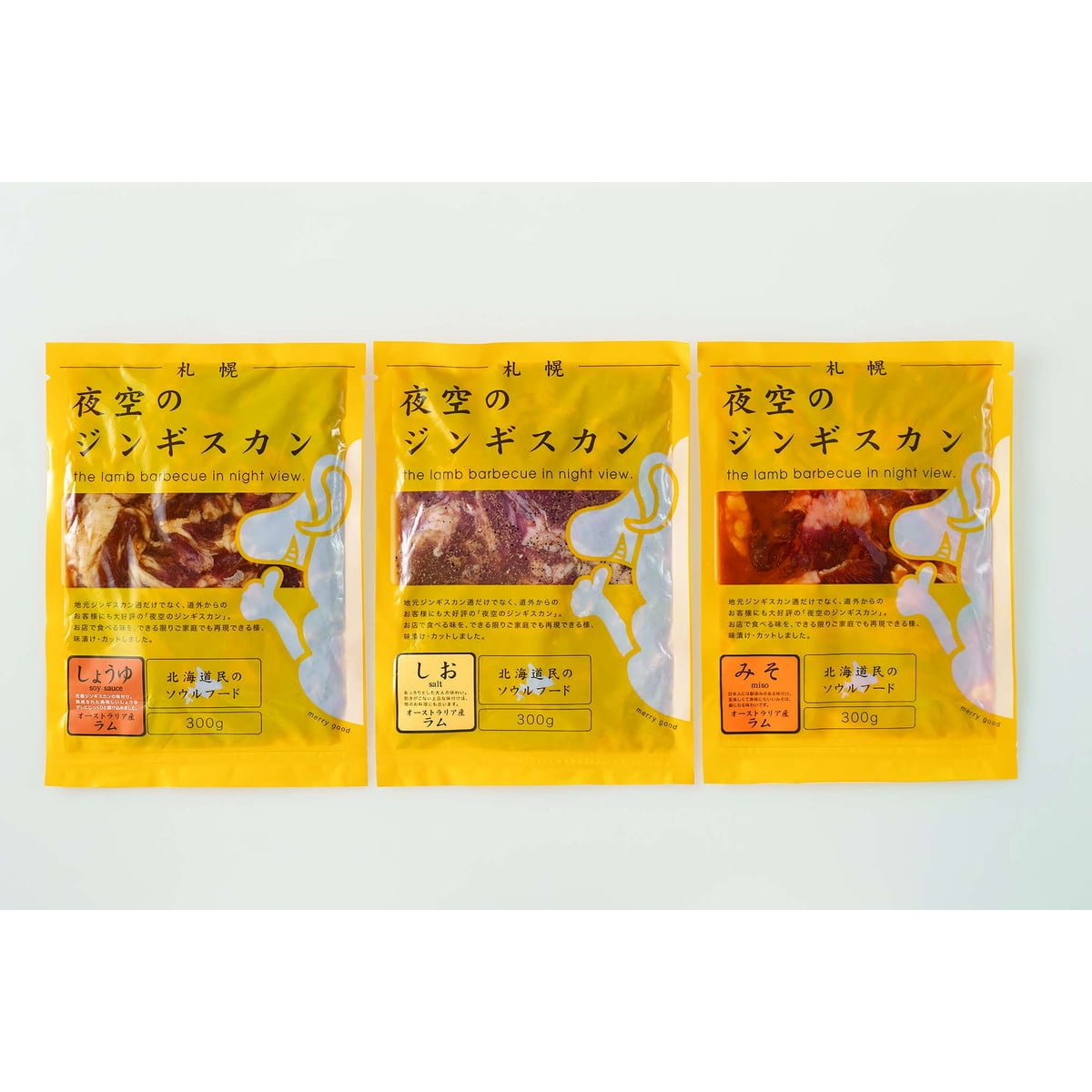 「肉の山本 夜空のジンギスカン 味付けラム肉食べ比べ3種セット」 札幌・ススキノで5店舗展開している人気のジンギスカン店『夜空のジンギスカン』。お店の味をご家庭でどうぞ。