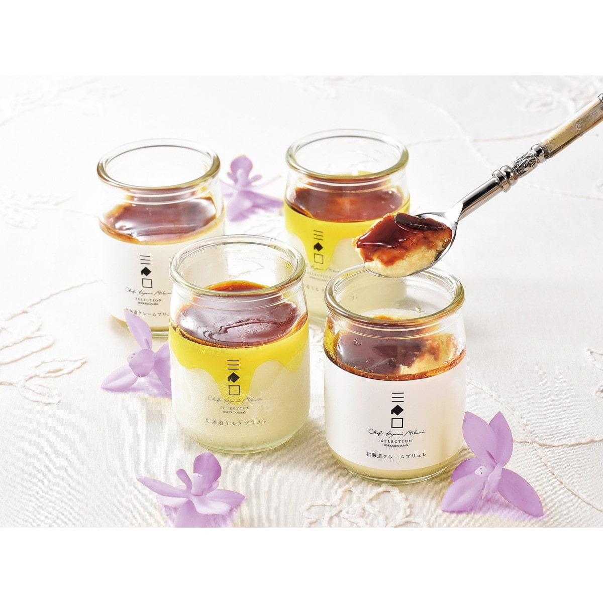 「三國推奨 北海道クレームブリュレ・ミルクブリュレセット」 メイド・イン・北海道のフランス料理定番スイーツ北海道の雪景色をイメージしたミルクの風味豊かな白いブリュレと、濃厚な味わいのクレームブリュレ。2種類のブリュレが楽しめます。半解凍にてお召し上がり下さい。