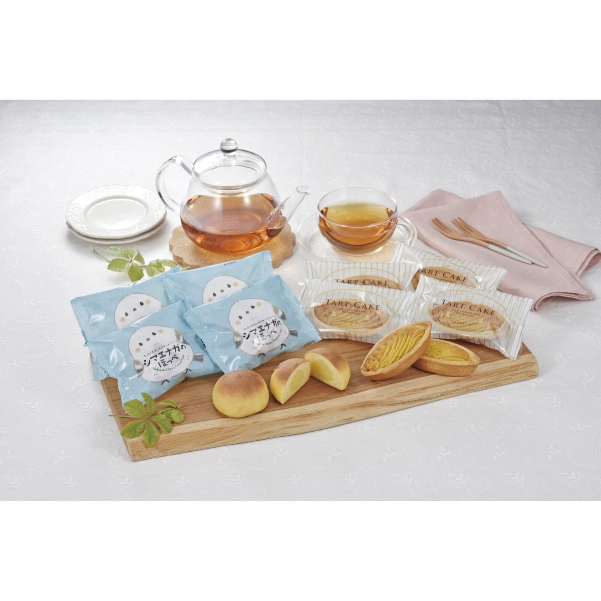 「十勝トテッポ工房 シマエナガのほっぺととうきびタルトセット」 もちもち生地が特徴のシマエナガのほっぺと十勝産とうもろこし使用のタルトケーキのセットです。