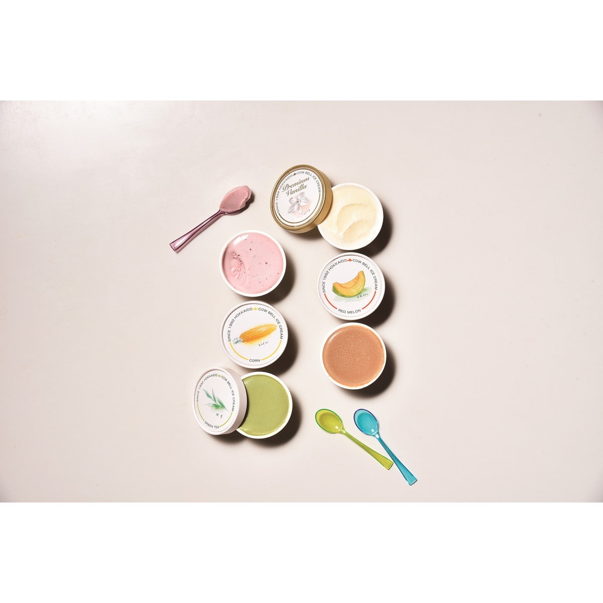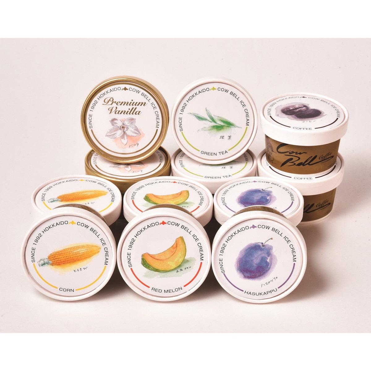 ●数量・内容:プレミアムバニラ・コーン・赤肉メロン・ハスカップ・抹茶・コーヒー/各80ml×2個