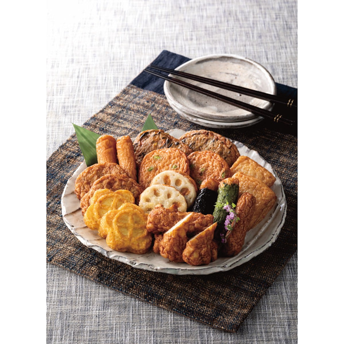 ●数量・内容:特揚げ棒天・いわし棒天・おいも天×各4、ごぼう天・にんじん天・れんこん天・枝豆天・五目揚・梅おはら揚×各2、のり巻・しそ巻×各1(11種26個)