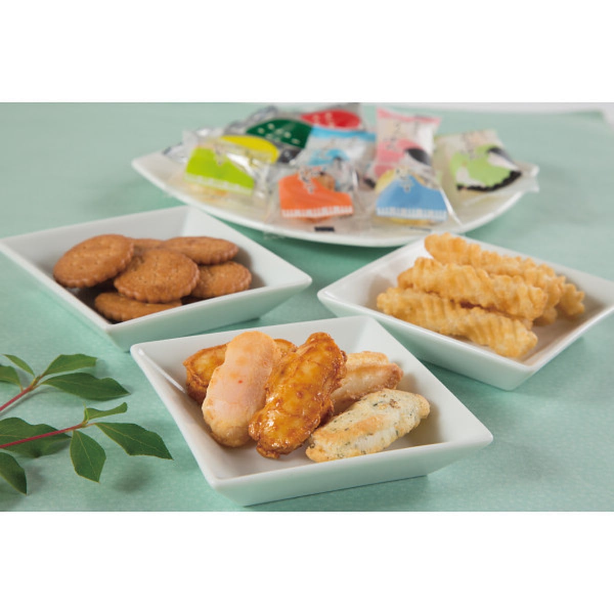「ひとときさん」 おかき・ひねり揚げ・ミレーフライのアソートギフトです、懐しい味や食感の違うお菓子など色々楽しめます。