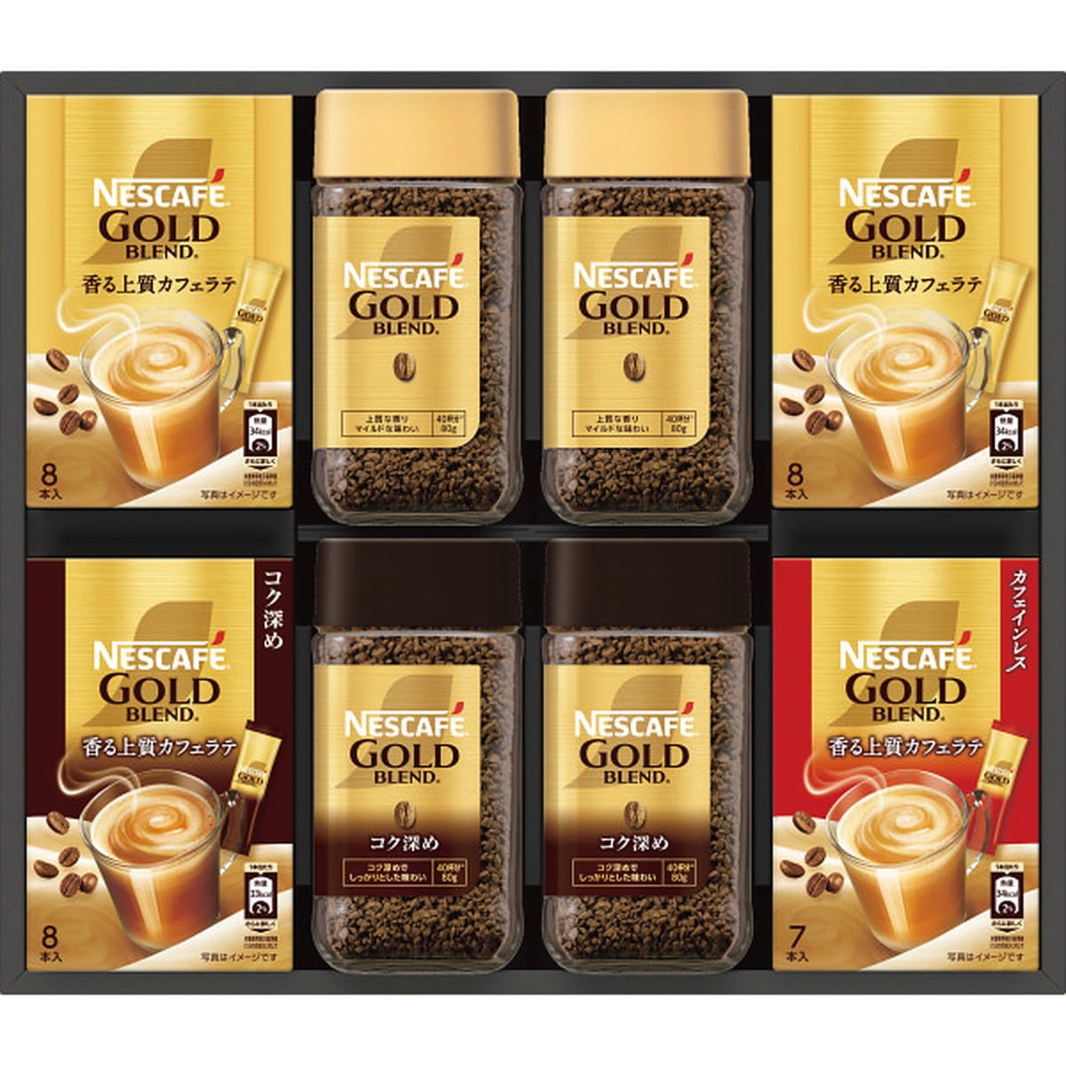 「ネスカフェ ゴールドブレンドプレミアムセット」 ブラックコーヒー、ミックスタイプコーヒーの両方のゴールドブレンドを味わえる特別なギフトです。