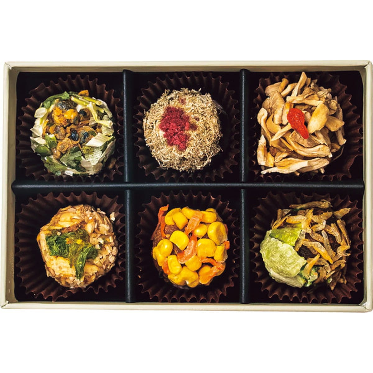●数量・内容:みそ玉(紫[鉄]:玄米味噌、黒豆味噌使用・緑[葉酸]:加賀味噌、黒豆味噌使用・水[ビタミンB1]:北海道味噌、九州麦味噌使用・黒[マグネシウム]:信州味噌、ひよこ豆味噌使用・橙[ビタミンD]:仙台味噌、玄米味噌使用・灰[亜鉛]:信州味噌、八丁味噌使用×各1)