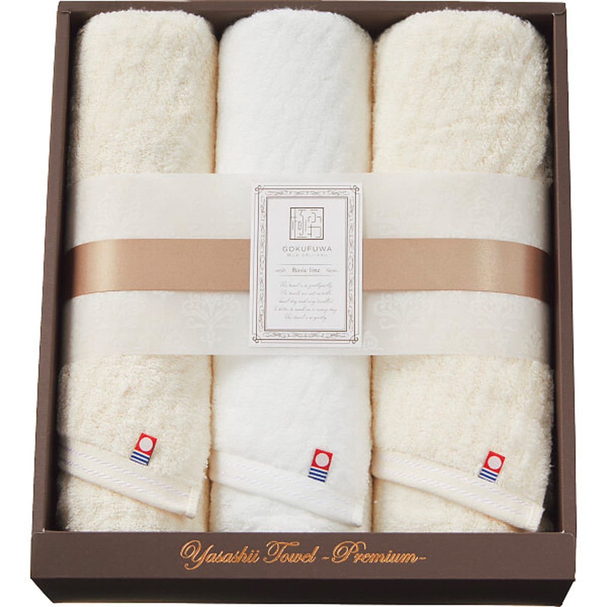 「極ふわ やさしいたおる ベーシックライン フェイスタオル3枚セット ベージュ」 ふんわりとした心地よさとたっぷりとしたボリューム感、ずっと包まれていたくなるような、Premium towel。贈りものに人気の高い今治製×美しい色合いが魅力的。シンプルなデザインに仕上げておりますので、どんな用途にもおすすめです。