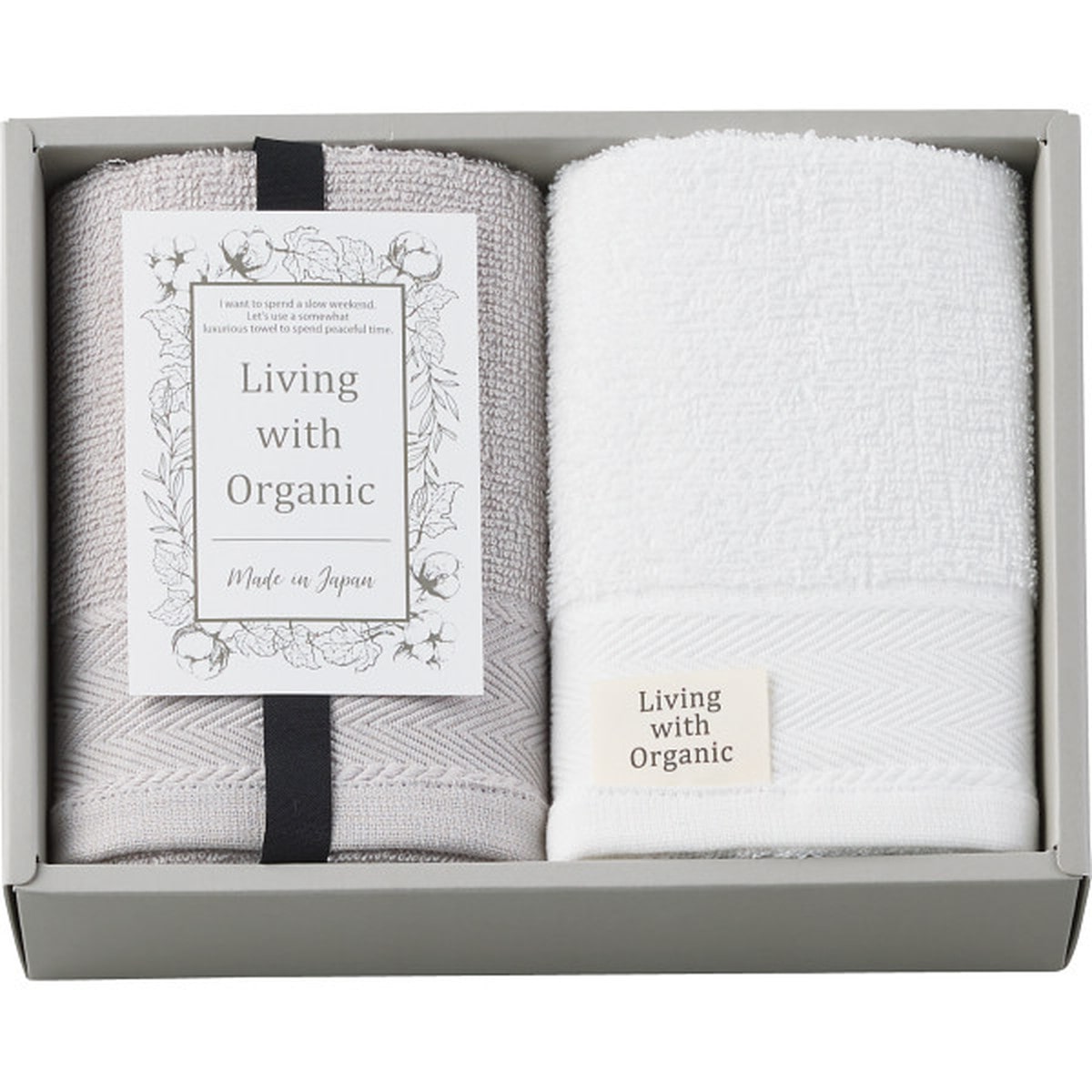 「リビングウィズオーガニック フェイスタオル2枚セット」 オーガニックタオルと暮らす。タオルの素材をオーガニックにするだけでなく、こだわりの製法で作り上げた地球にも人にも優しい国産タオルです。タオルの仕様は普段使いしやすくこだわりました。