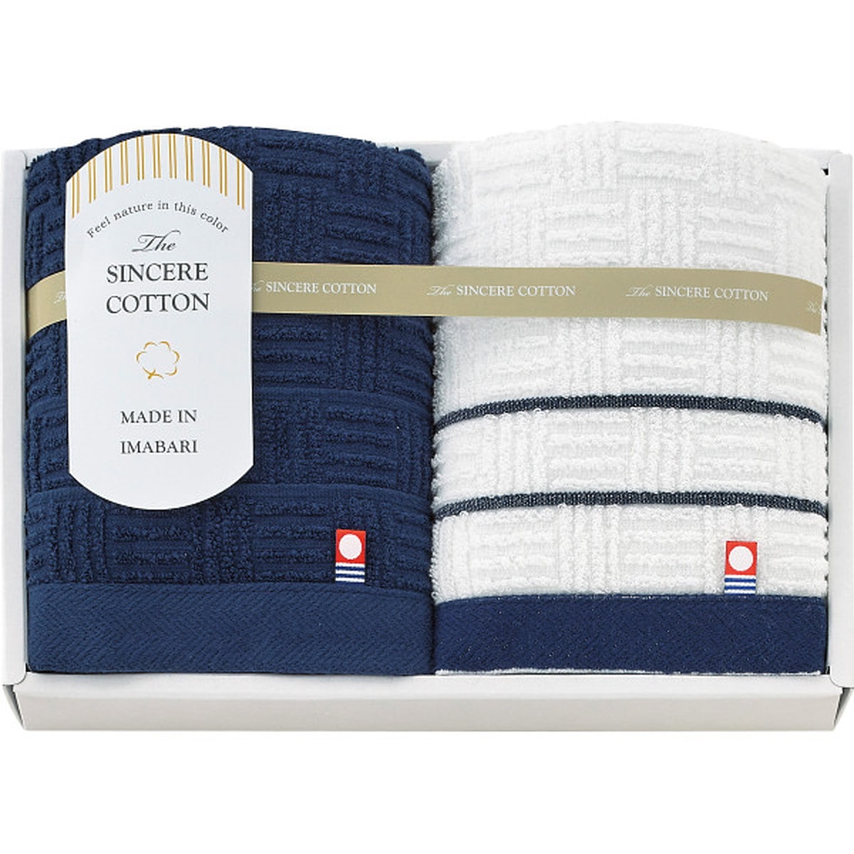 「シンシアコットン フェイスタオル2枚セット」 ネイビーとホワイトのコントラストが美しいギフトセット。