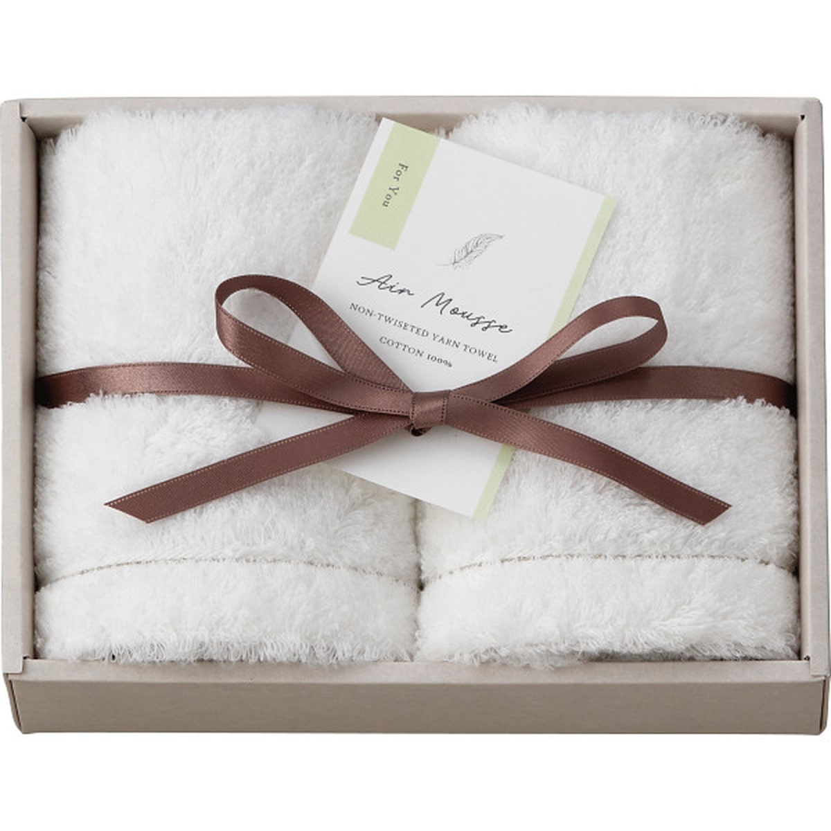 「エアームース ウォッシュタオル2枚セット」 糸に撚りをかけない“無撚糸”を使用して織り上げているので、柔らかくふんわりとした肌ざわりで、綿そのもののやわらかさを楽しめるタオルです。思わず顔をうずめたくなるような弾力のあるやわらかさと、その軽さを感じてみてください。