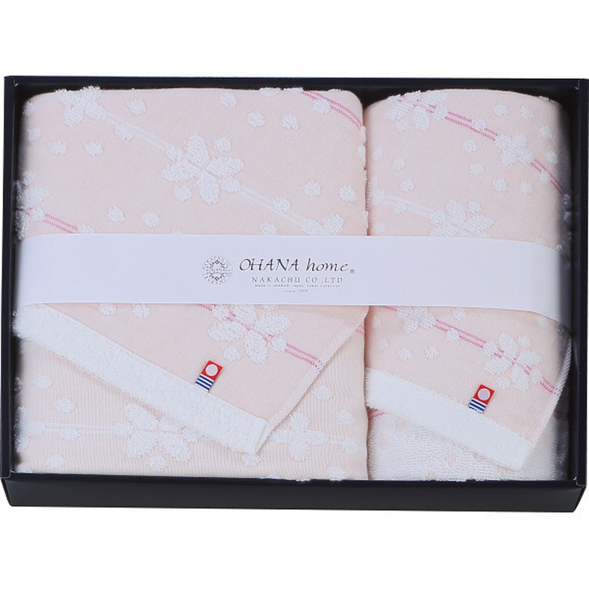 「オハナ・ホーム バス・フェイスタオルセット ピンク」 軽くて使い勝手がいい片面ガーゼ織りタオル。