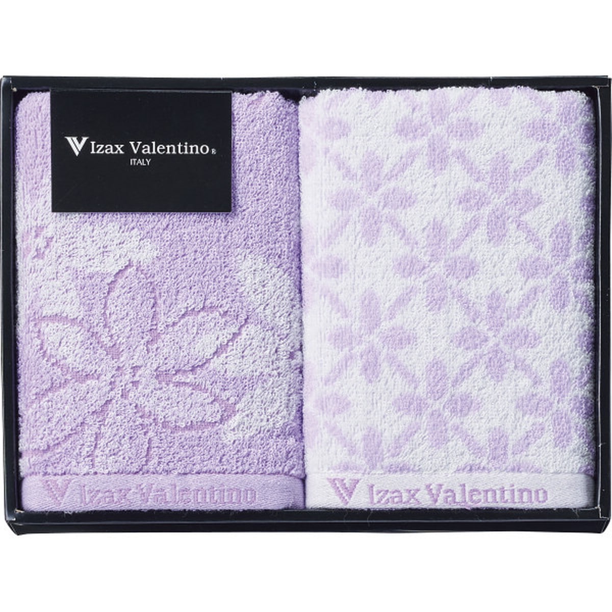 「アイザック・バレンチノ フェイスタオル2枚セット」 パープルを基調にデザインされたシンプルで使いやすいタオギフト。シーンを選ばすお使い頂けます。