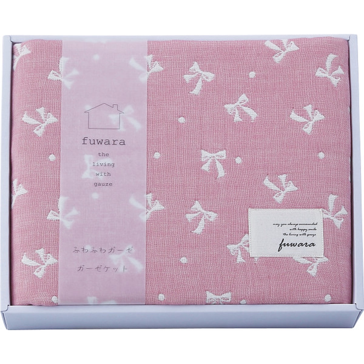 「ふわら 六重織ガーゼひざかけ リボン」 肌にふんわり、やさしい掛け心地。ふわふわして、そしてなめらか。気持ちよい肌ざわりが特徴です。