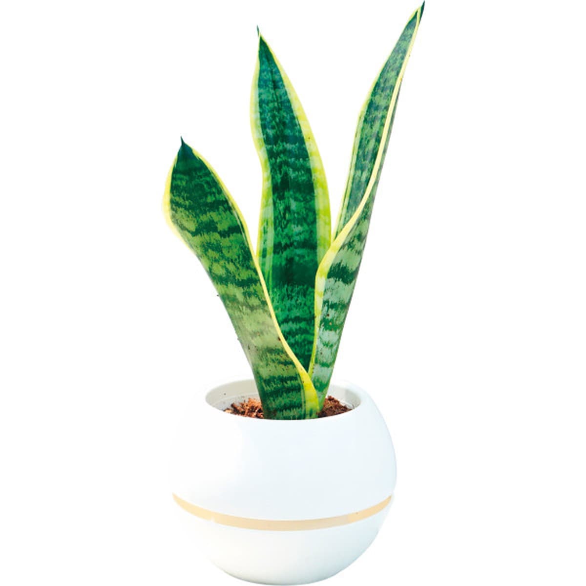 「サンセベリア 丸鉢5号鉢」 乾燥に強く、水を少々忘れたくらいではビクともしない育てやすい観葉植物です。受け皿付きですので、そのまま置いていただけます。