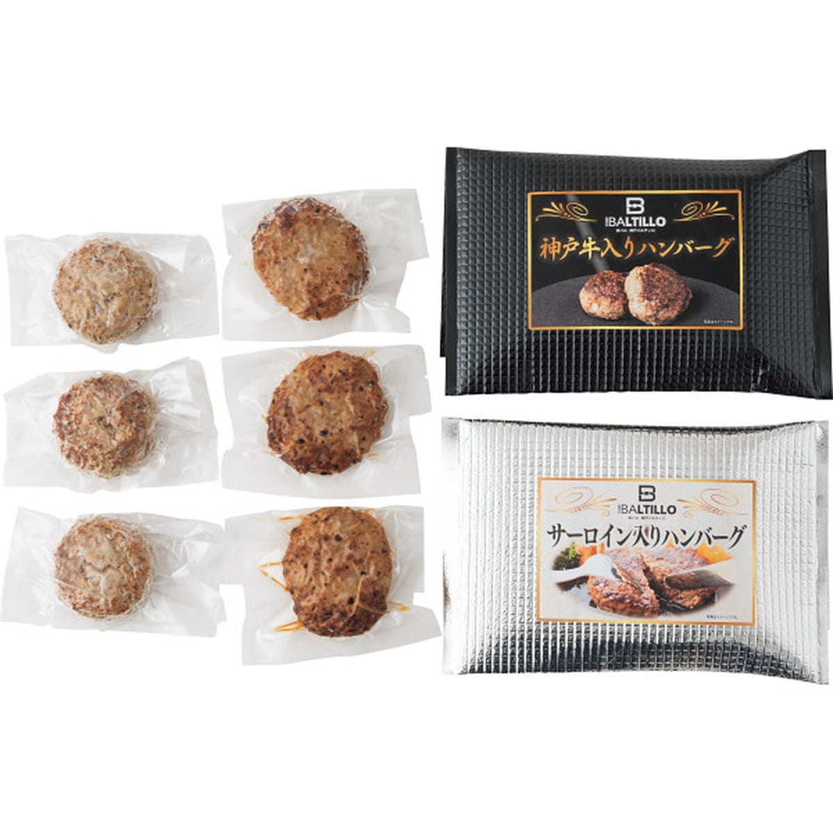 ●数量・内容:神戸牛入りハンバーグ(牛肉・豚肉使用)100g×3、サーロイン入りハンバーグ(牛肉・豚肉使用)100g×3