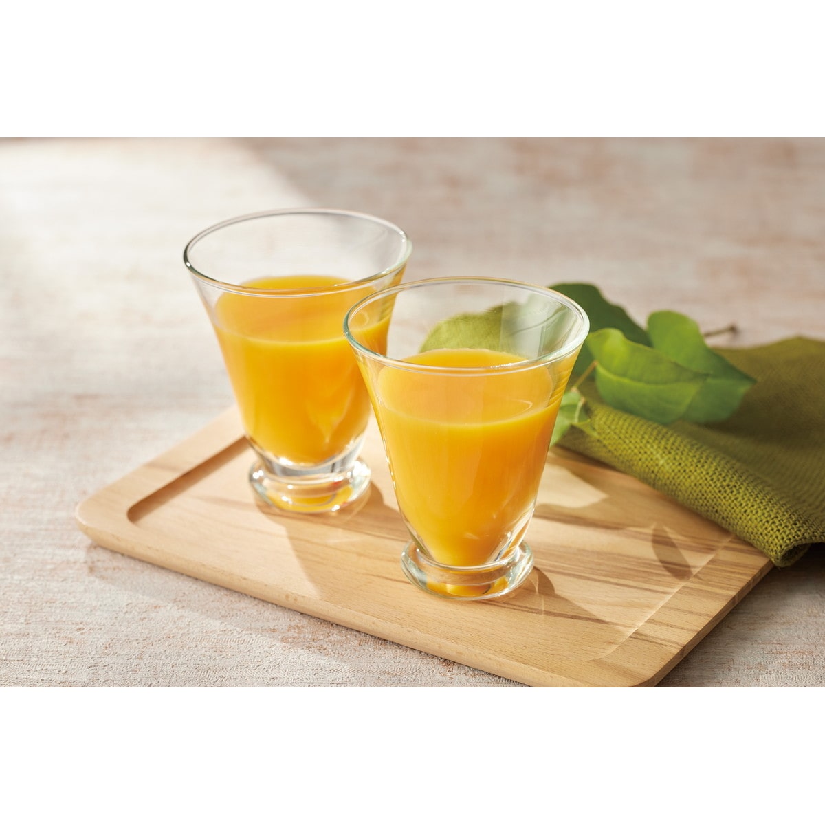 [和歌山「早和果樹園」2種の有田みかんジュース飲み比べ] 皮を剥いて果肉だけを裏ごしするように搾った100%ストレートジュース。まるでみかんを食べているかのような味わいです。