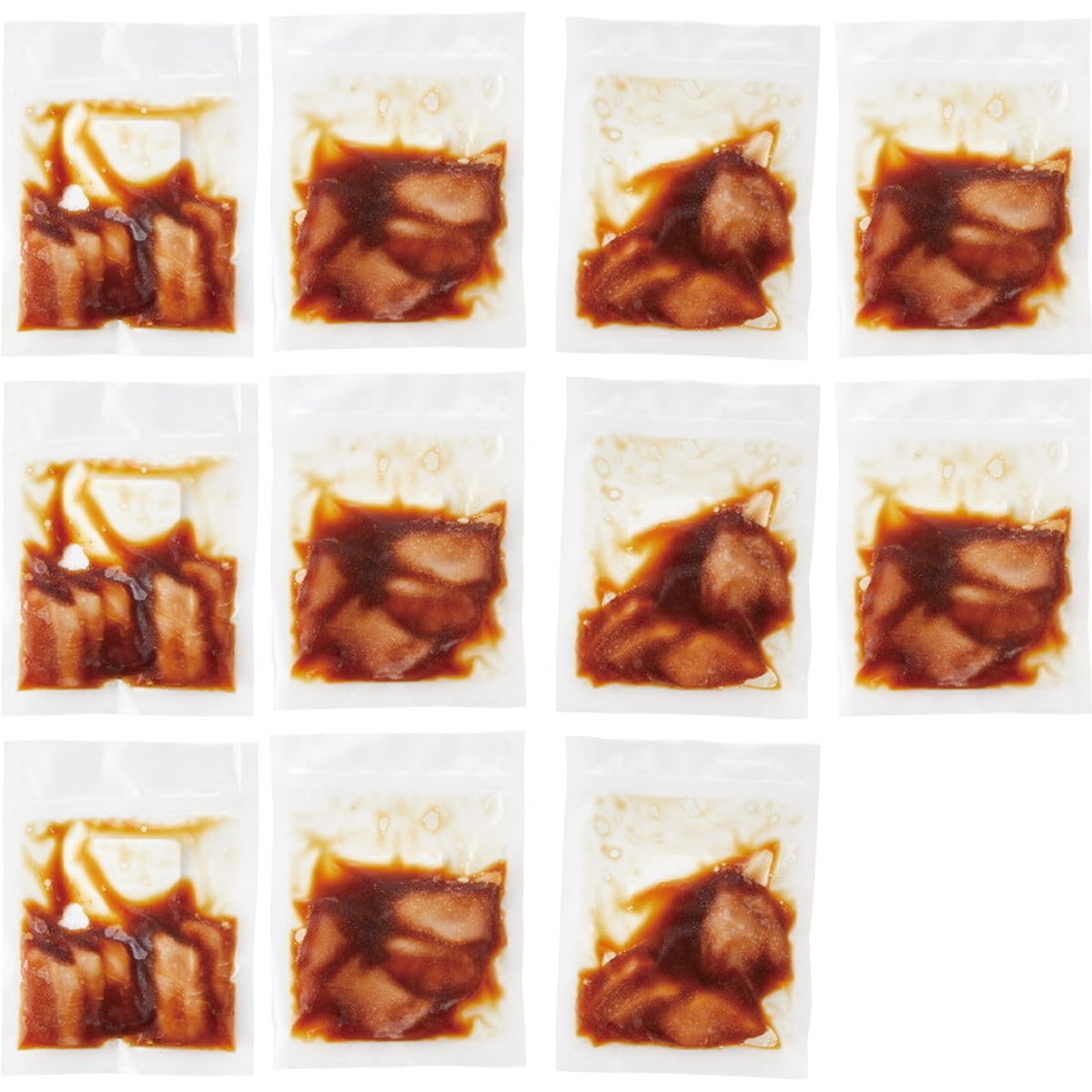 ●原材料:めばちマグロ(台湾産、韓国産、その他)、たれ(醤油、水飴、砂糖、発酵調味料、魚介エキス、香辛料) / 調味料(アミノ酸等)、カラメル色素、(一部に小麦・大豆を含む)