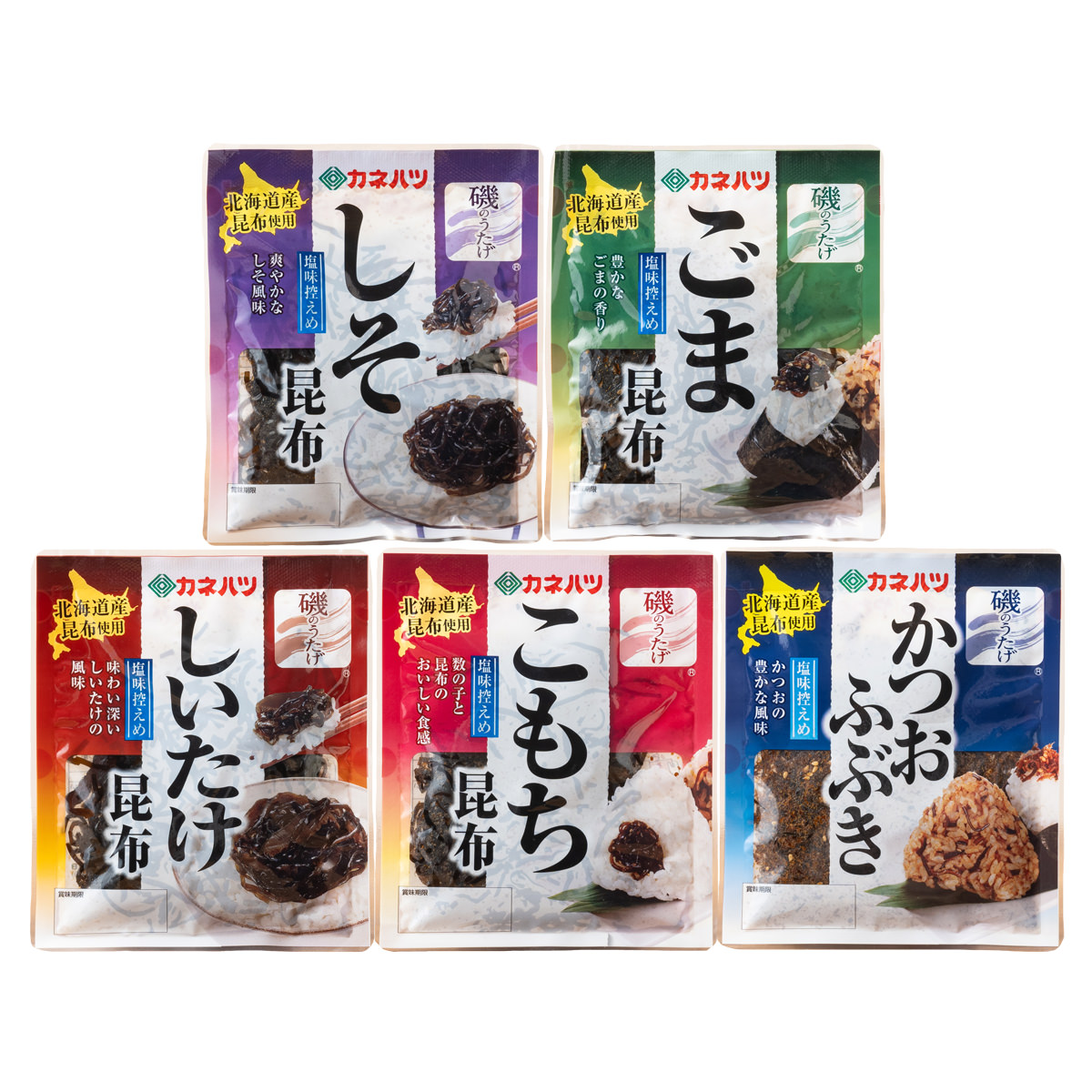 ●数量・内容:しそ昆布105g、ごま昆布105g、しいたけ昆布95g、こもち昆布70g、かつおふぶき60g