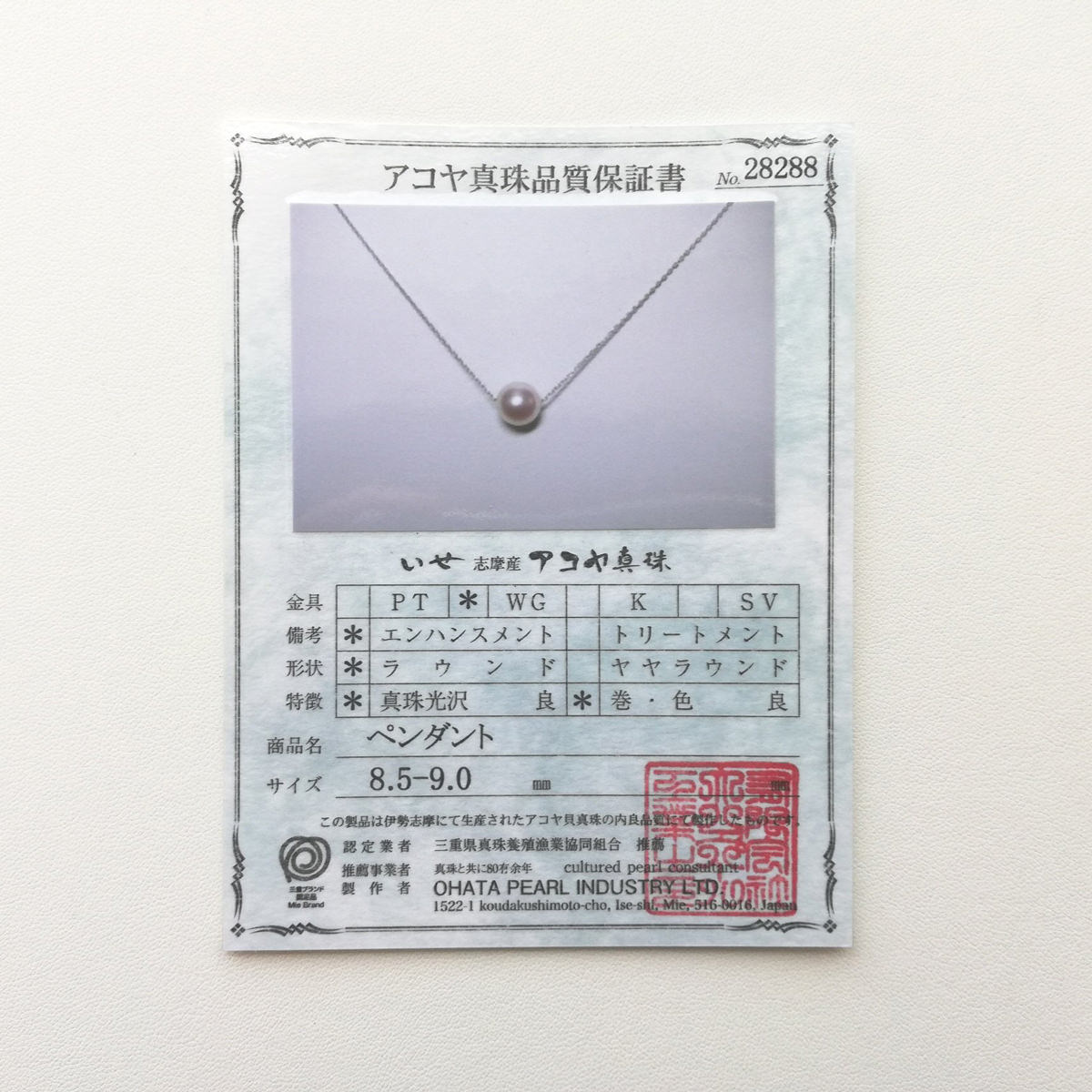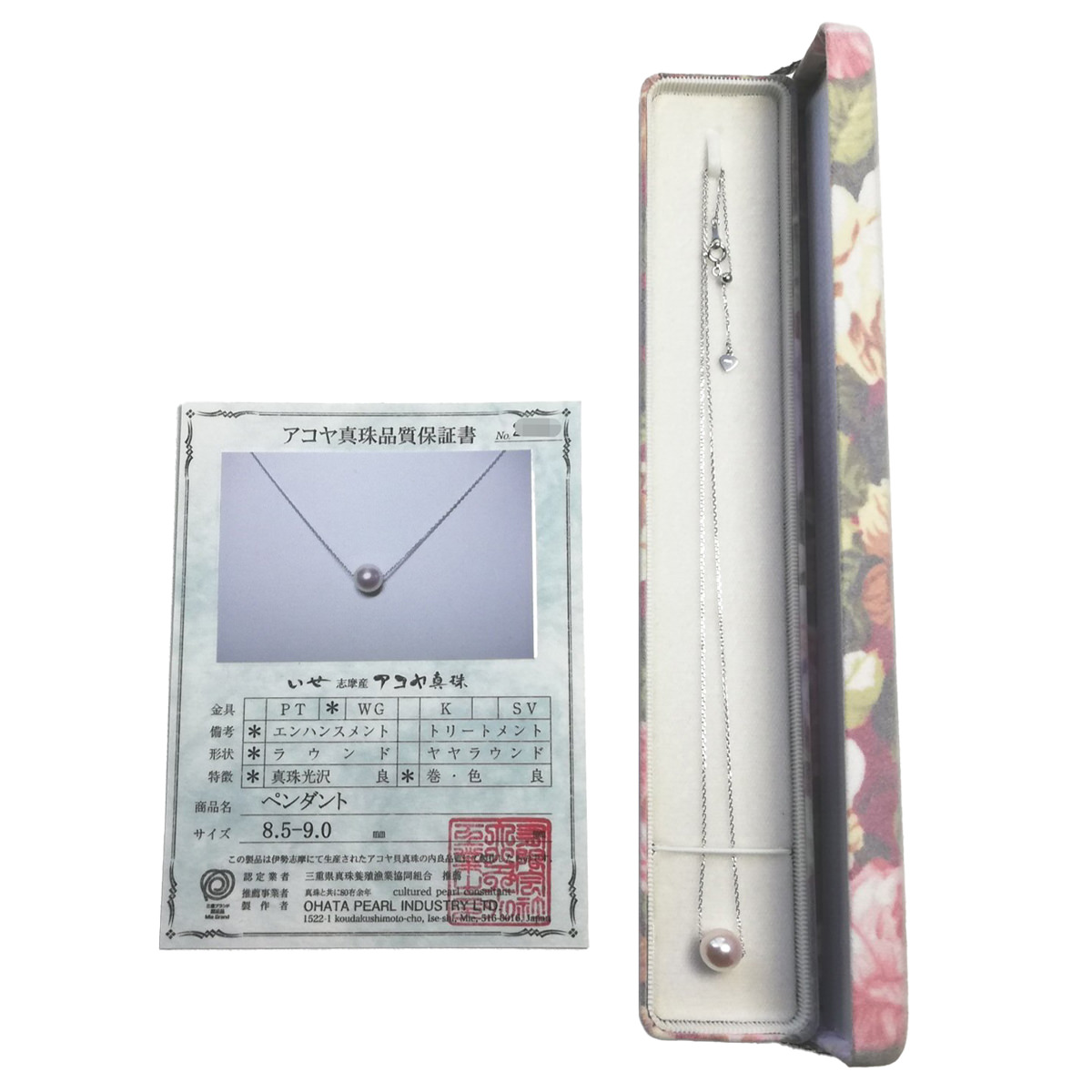 ●数量・内容:アコヤ真珠ペンダント8.5~9.0mm(スライド式チェーン45cm)、専用ケース、保証書