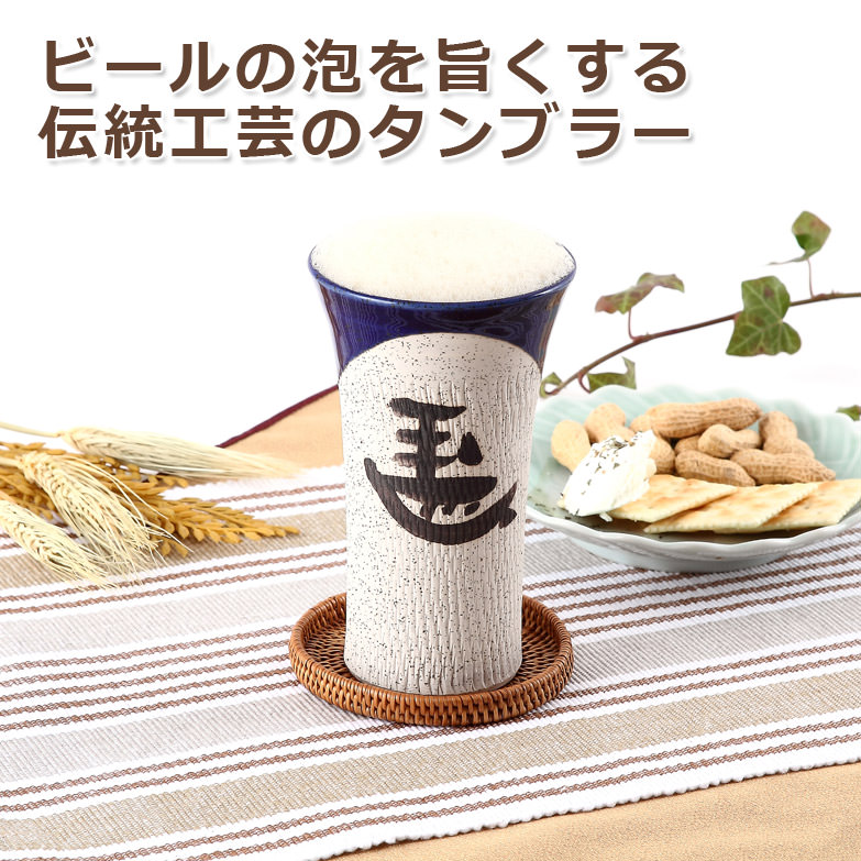 大堀相馬焼は福島県双葉郡浪江町にて300年続く伝統の工芸品です。東日本大震災の後、大堀相馬焼の窯元は、二本松市の協力を得て二本松市小沢工業団地に「陶芸の杜 おおぼり 二本松工房」として、その活動を再開させました。大堀相馬焼の名前を、その歴史と伝統を守り続けるため、本来の形での商品も、新しい土地でどんどん生まれています。そんな、大堀相馬焼のビールタンブラーです。内部が素焼きになることでビール泡がきめ細やかになり、クリーミーな喉越しです。贈り物に、ご自分へのご褒美に、お役立てください。