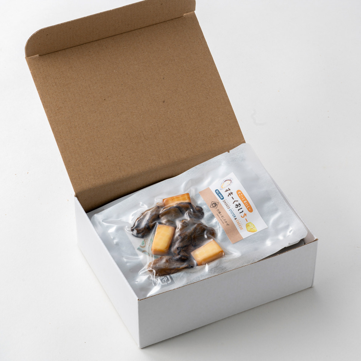 <すもーくおいちー>牡蠣(岡山県瀬戸内市産)、ナチュラルチーズ、加工黒糖(原料糖、黒糖)、食塩、白粒こしょう、ローリエ、タイム、唐辛子/乳化剤