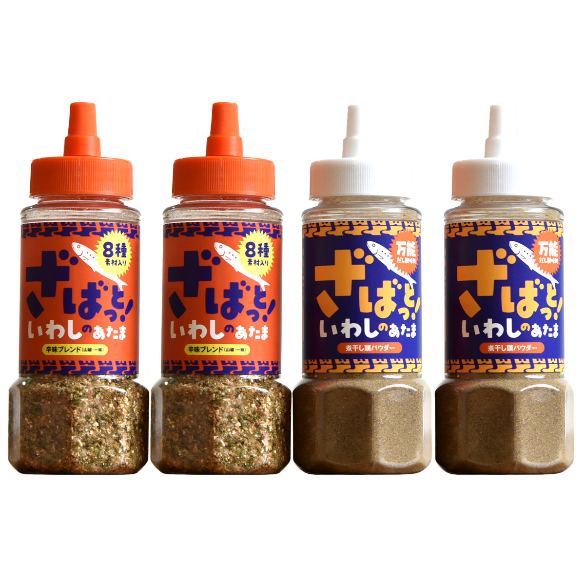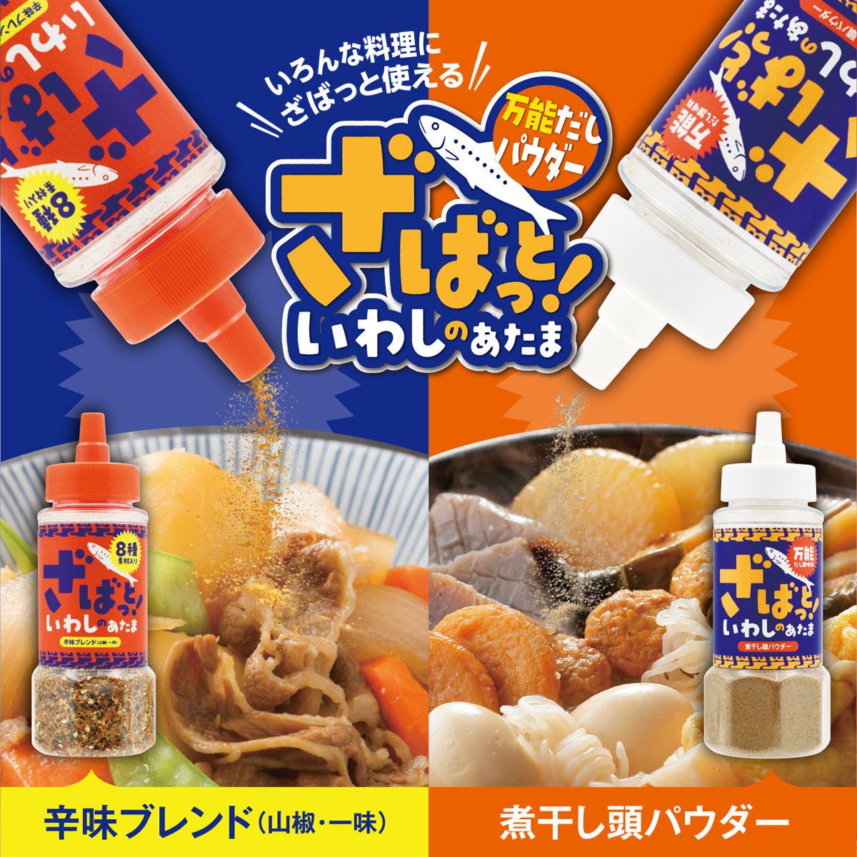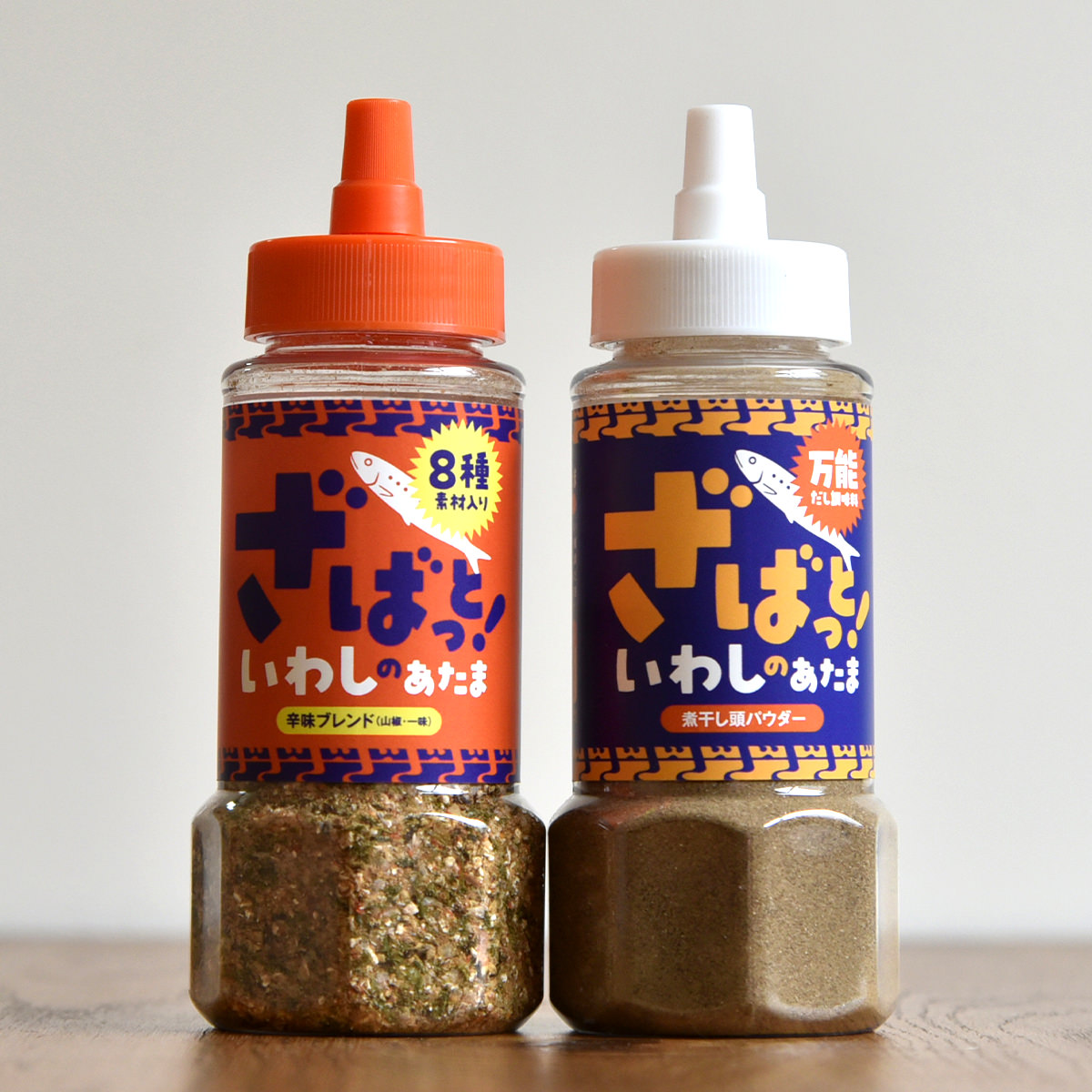「西尾商店 ざばっと!いわしのあたま だしパウダー セット」は、いわし煮干しをまるごと微粉末にした、食塩不使用の万能調味料2種の詰め合わせです。だしふりかけとして、お料理にサッとひとふりするだけで風味を引き立て、奥深い味わいに。カルシウムやタンパク質などの栄養素を摂れるのも魅力です。賞味期限は開封前の期限となります。開封後は冷蔵庫にて保存してください。<煮干し頭パウダー(プレーン)>いわしの煮干しのあたまをきめ細かいパウダーにしました。いわしの栄養をまるごと摂れる、万能ふりかけ調味料です。お料理にひとふりするだけで風味豊かに。調理の味付けにもお使いいただけます。<辛味ブレンド>いわしの煮干しのあたまをパウダーにしたのをベースに、かつお節、ごま、しいたけ、昆布、のり、さらにピリッと一味と山椒をプラス。塩などは加えず、素材の味のブレンドを楽しめる万能ふりかけ調味料です。{おすすめの料理}<煮干し頭パウダー>味噌汁、豚汁、炒め物、おでん、焼きそば、うどん、カップ麺など<辛味ブレンド>焼きそば、チャーハン、納豆、お茶漬け、うどんなど