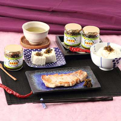 徳島県美馬市美馬町で加工販売される「みまから」は、地元美馬地方で古くから栽培されてきた糖度が高く辛味が強い特性を持つ「みまから唐辛子」を原材料とした,伝統を伝えるこだわりの品です。もともとは同町一帯の各家庭で栽培されてきたもので、ハウス栽培ではなく太陽の恵みを十分に受け取った、地域の特産品としての顔を持っています。1本1本丁寧に育て、胡麻油、醤油、みりん、鰹節等を加えた風味豊かな薬味に仕上げています。焼肉・麺類・冷奴などにのせたり、マヨネーズに混ぜてもお使いいただけます。また、カレー、チャーハンのアクセント等にも相性抜群です。